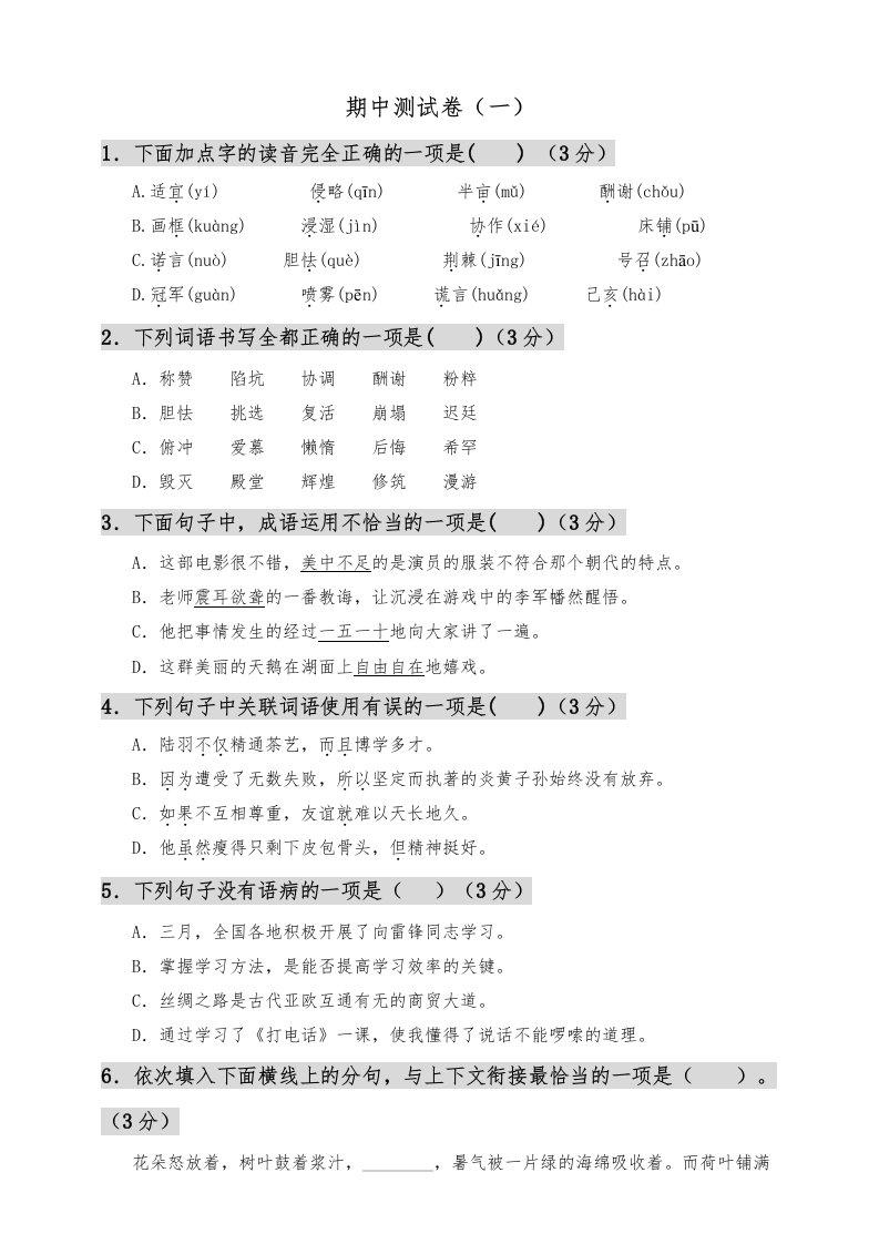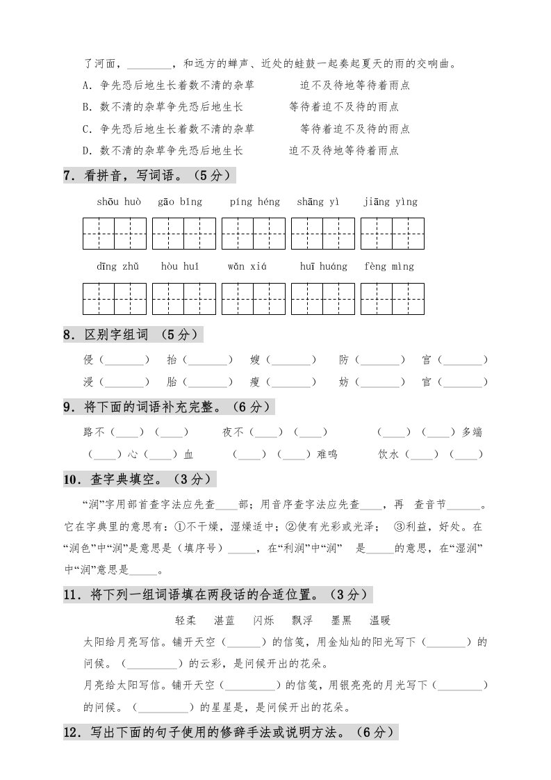 当前位置: 首页小学资源小学五年级正文 五年级语文上册期中测试—部编版(7)(部编版)_共7页 小学五年级 7 天前 0 0 5 以上为部分内容预览,如需源文档请登录您的会员账号进行下载! 声明:本站所有文章,如无特殊说明或标注,均为本站原创发布。任何个人或组织,在未征得本站同意时,禁止复制、盗用、采集、发布本站内容到任何网站、书籍等各类媒体平台。如若本站内容侵犯了原著者的合法权益,可联系我们进行处理。 尚学资源永久会员 打赏 收藏 海报 链接
