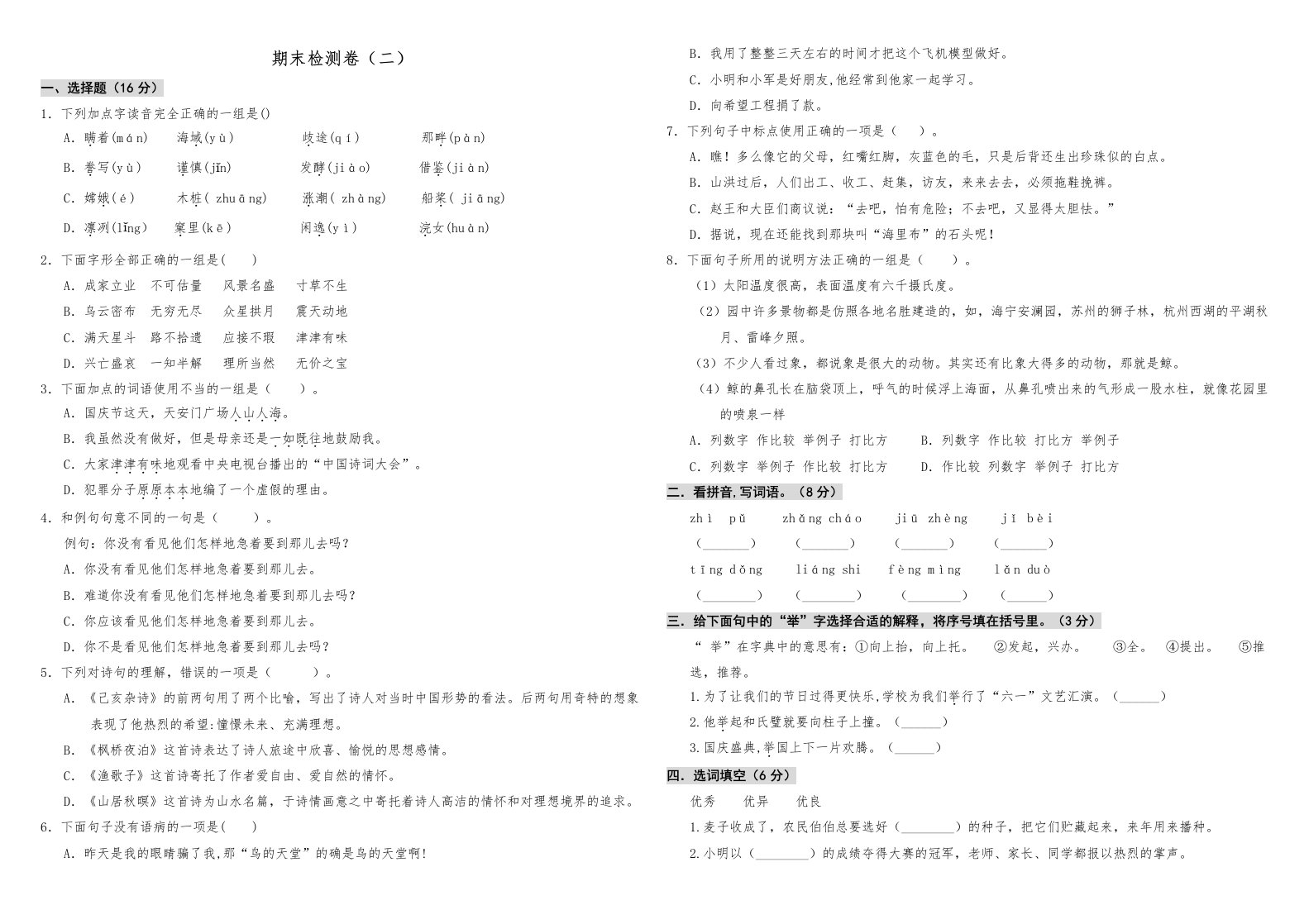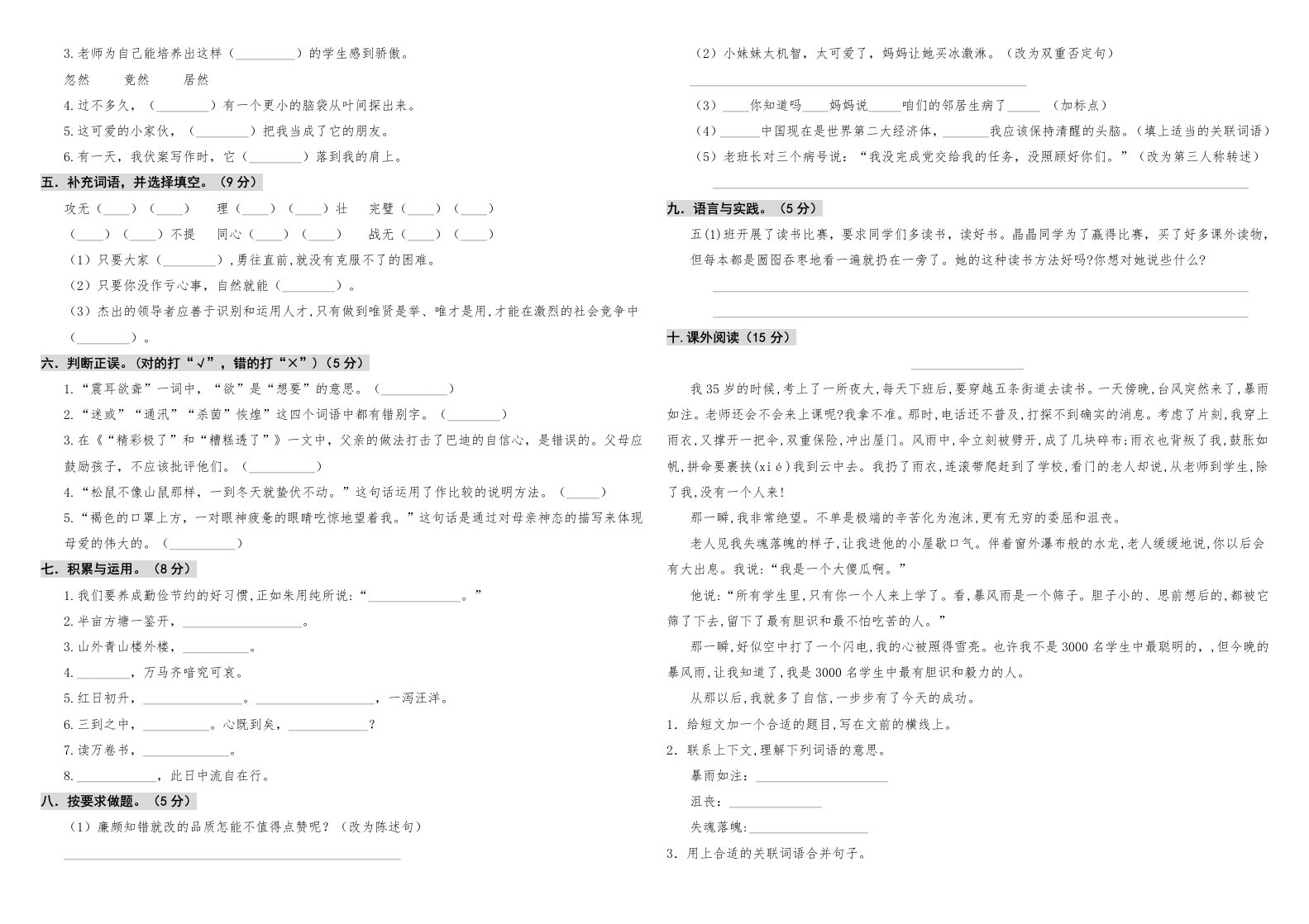 五年级语文上册期中测试—部编版(4)(部编版)_共3页