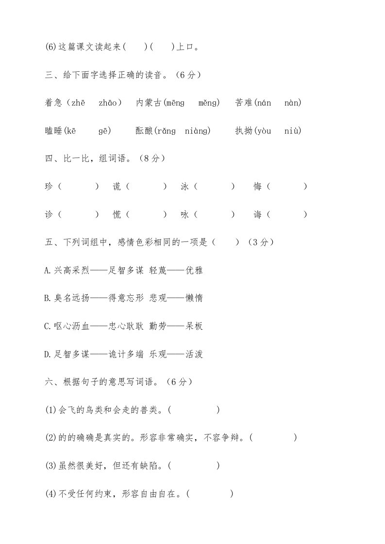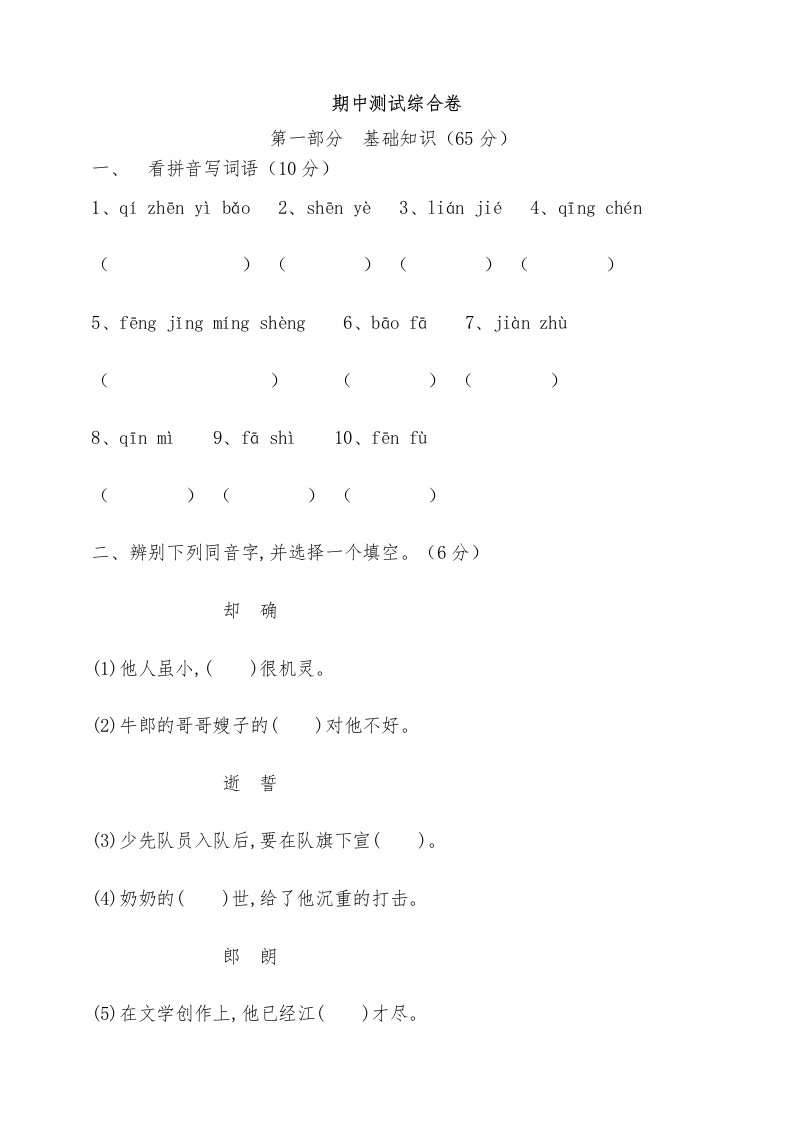 五年级语文上册期中测试—部编版(2)(部编版)_共8页