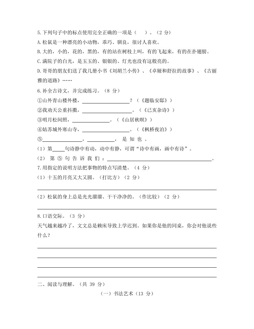 五年级语文上册上期末模拟卷(二)(部编版)_共9页