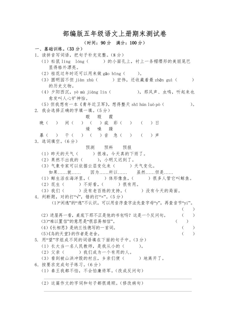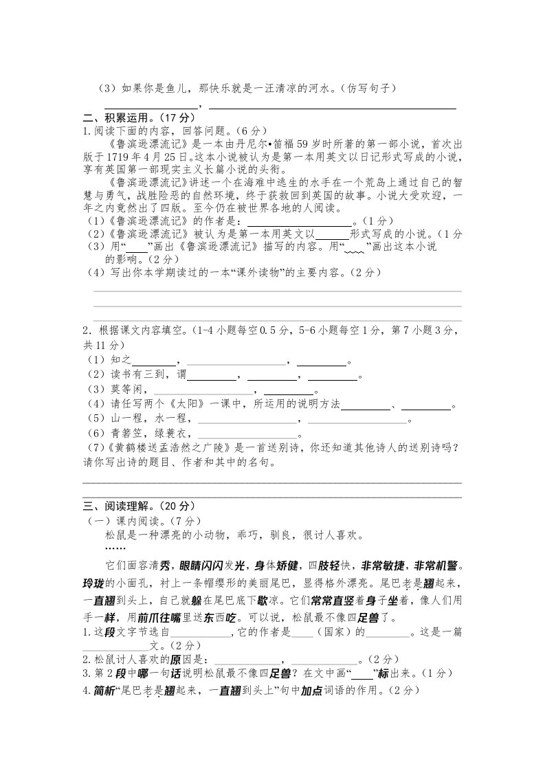 当前位置: 首页小学资源小学五年级正文 五年级语文上册期末练习(3)(部编版)_共6页 小学五年级 7 天前 0 0 5 以上为部分内容预览,如需源文档请登录您的会员账号进行下载! 声明:本站所有文章,如无特殊说明或标注,均为本站原创发布。任何个人或组织,在未征得本站同意时,禁止复制、盗用、采集、发布本站内容到任何网站、书籍等各类媒体平台。如若本站内容侵犯了原著者的合法权益,可联系我们进行处理。 尚学资源永久会员 打赏 收藏 海报 链接