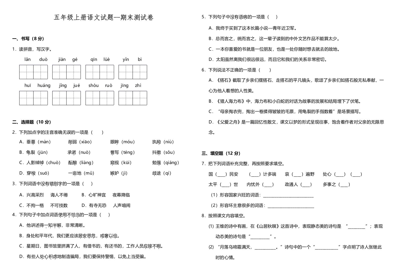 当前位置: 首页小学资源小学五年级正文 五年级语文上册(期末测试)–部编版(7)(部编版)_共6页 小学五年级 7 天前 0 0 5 以上为部分内容预览,如需源文档请登录您的会员账号进行下载! 声明:本站所有文章,如无特殊说明或标注,均为本站原创发布。任何个人或组织,在未征得本站同意时,禁止复制、盗用、采集、发布本站内容到任何网站、书籍等各类媒体平台。如若本站内容侵犯了原著者的合法权益,可联系我们进行处理。 尚学资源永久会员 打赏 收藏 海报 链接