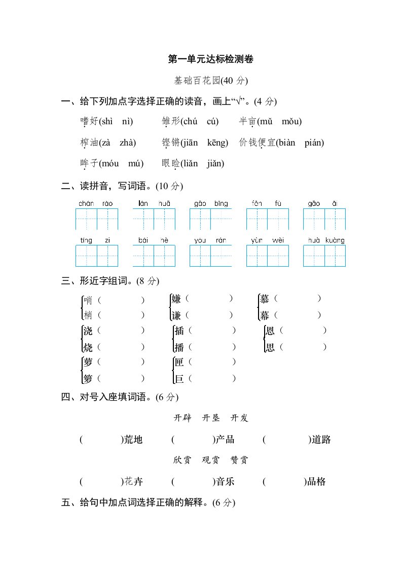 当前位置: 首页小学资源小学五年级正文 五年级语文上册第一单元达标检测卷(一)(部编版)_共9页 小学五年级 7 天前 0 0 5 以上为部分内容预览,如需源文档请登录您的会员账号进行下载! 声明:本站所有文章,如无特殊说明或标注,均为本站原创发布。任何个人或组织,在未征得本站同意时,禁止复制、盗用、采集、发布本站内容到任何网站、书籍等各类媒体平台。如若本站内容侵犯了原著者的合法权益,可联系我们进行处理。 尚学资源永久会员 打赏 收藏 海报 链接
