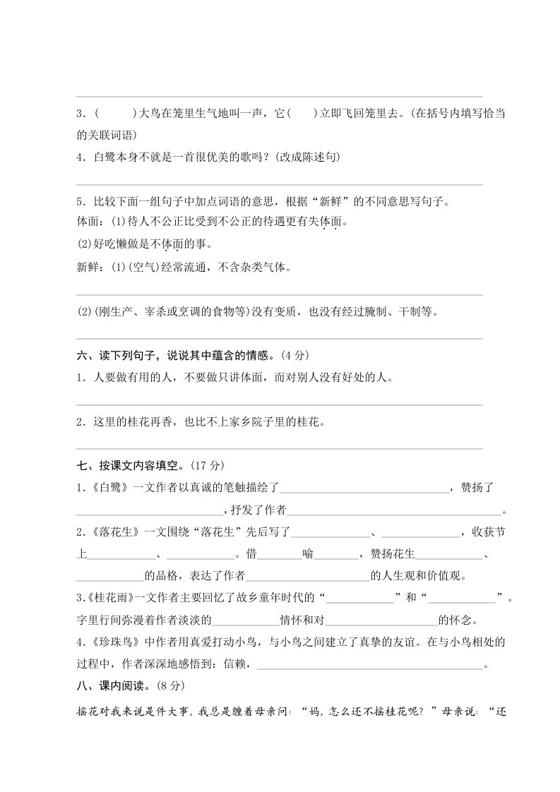 当前位置: 首页小学资源小学五年级正文 五年级语文上册第一单元测评(部编版)_共6页 小学五年级 7 天前 0 0 5 以上为部分内容预览,如需源文档请登录您的会员账号进行下载! 声明:本站所有文章,如无特殊说明或标注,均为本站原创发布。任何个人或组织,在未征得本站同意时,禁止复制、盗用、采集、发布本站内容到任何网站、书籍等各类媒体平台。如若本站内容侵犯了原著者的合法权益,可联系我们进行处理。 尚学资源永久会员 打赏 收藏 海报 链接