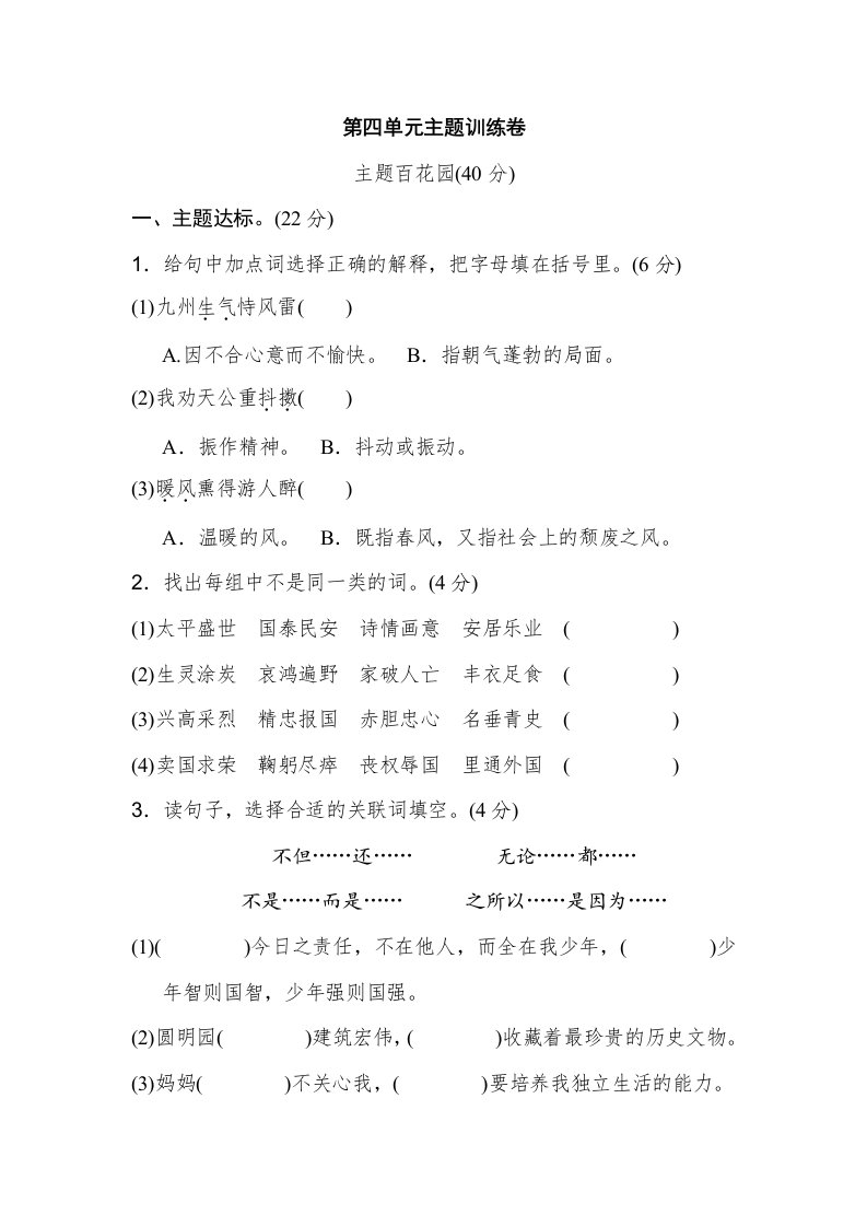 当前位置: 首页小学资源小学五年级正文 五年级语文上册第四单元主题训练卷(部编版)_共9页 小学五年级 7 天前 0 0 5 以上为部分内容预览,如需源文档请登录您的会员账号进行下载! 声明:本站所有文章,如无特殊说明或标注,均为本站原创发布。任何个人或组织,在未征得本站同意时,禁止复制、盗用、采集、发布本站内容到任何网站、书籍等各类媒体平台。如若本站内容侵犯了原著者的合法权益,可联系我们进行处理。 尚学资源永久会员 打赏 收藏 海报 链接