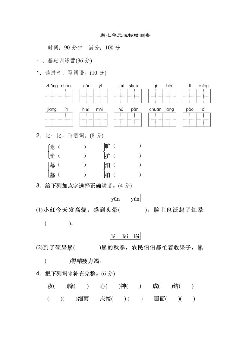五年级语文上册第七单元达标检测卷(二)(部编版)_共9页