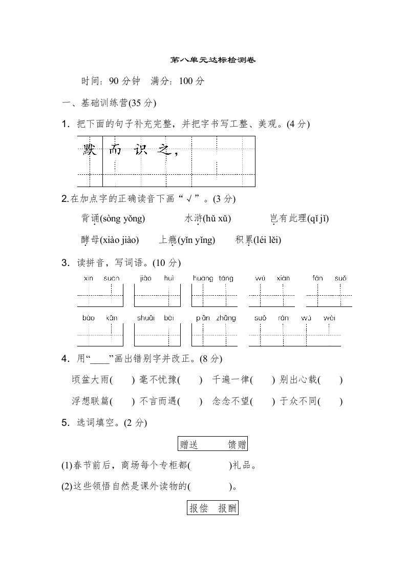 当前位置: 首页小学资源小学五年级正文 五年级语文上册第八单元达标检测卷(二)(部编版)_共8页 小学五年级 7 天前 0 0 5 以上为部分内容预览,如需源文档请登录您的会员账号进行下载! 声明:本站所有文章,如无特殊说明或标注,均为本站原创发布。任何个人或组织,在未征得本站同意时,禁止复制、盗用、采集、发布本站内容到任何网站、书籍等各类媒体平台。如若本站内容侵犯了原著者的合法权益,可联系我们进行处理。 尚学资源永久会员 打赏 收藏 海报 链接