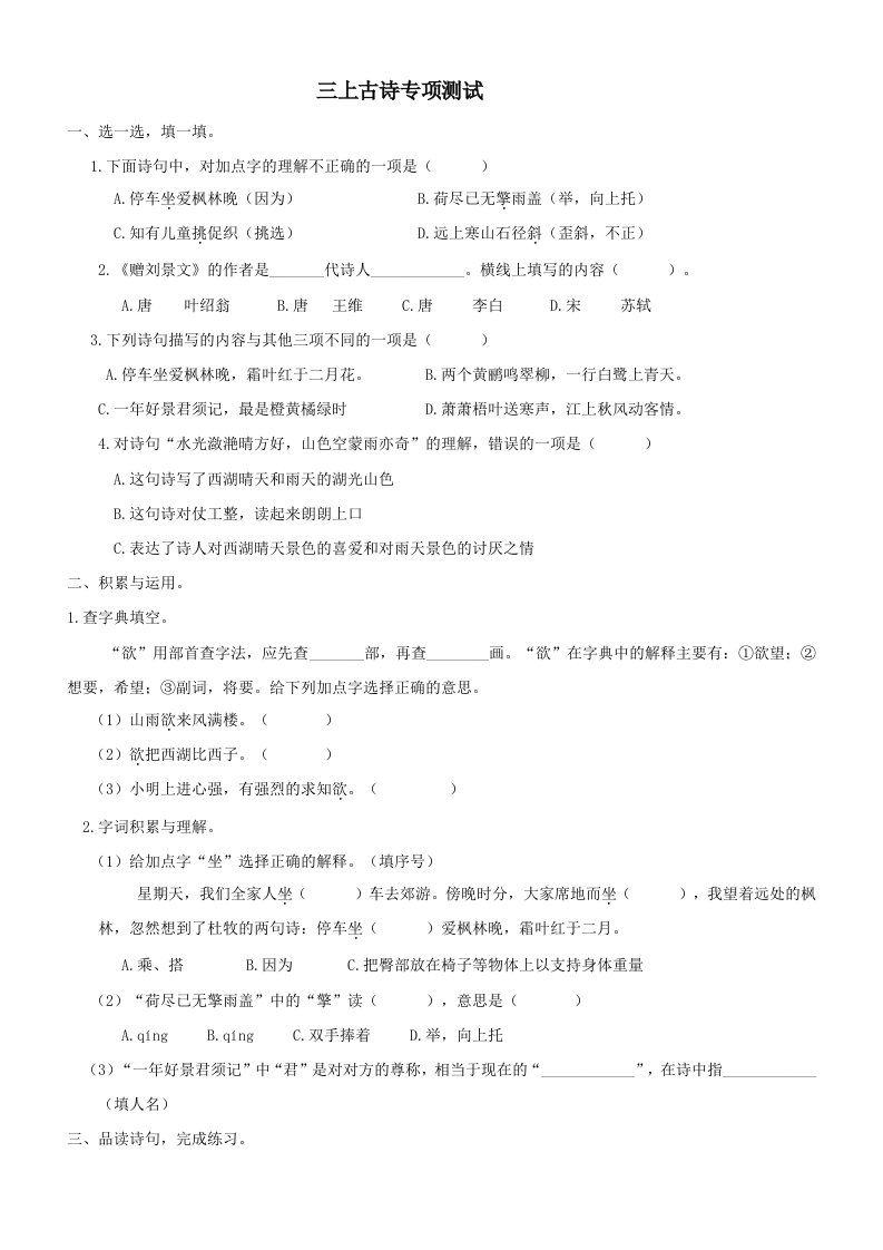 当前位置: 首页小学资源小学三年级正文 三上语文-古诗专项_共5页 小学三年级 6 天前 0 0 5 以上为部分内容预览,如需源文档请登录您的会员账号进行下载! 声明:本站所有文章,如无特殊说明或标注,均为本站原创发布。任何个人或组织,在未征得本站同意时,禁止复制、盗用、采集、发布本站内容到任何网站、书籍等各类媒体平台。如若本站内容侵犯了原著者的合法权益,可联系我们进行处理。 尚学资源永久会员 打赏 收藏 海报 链接