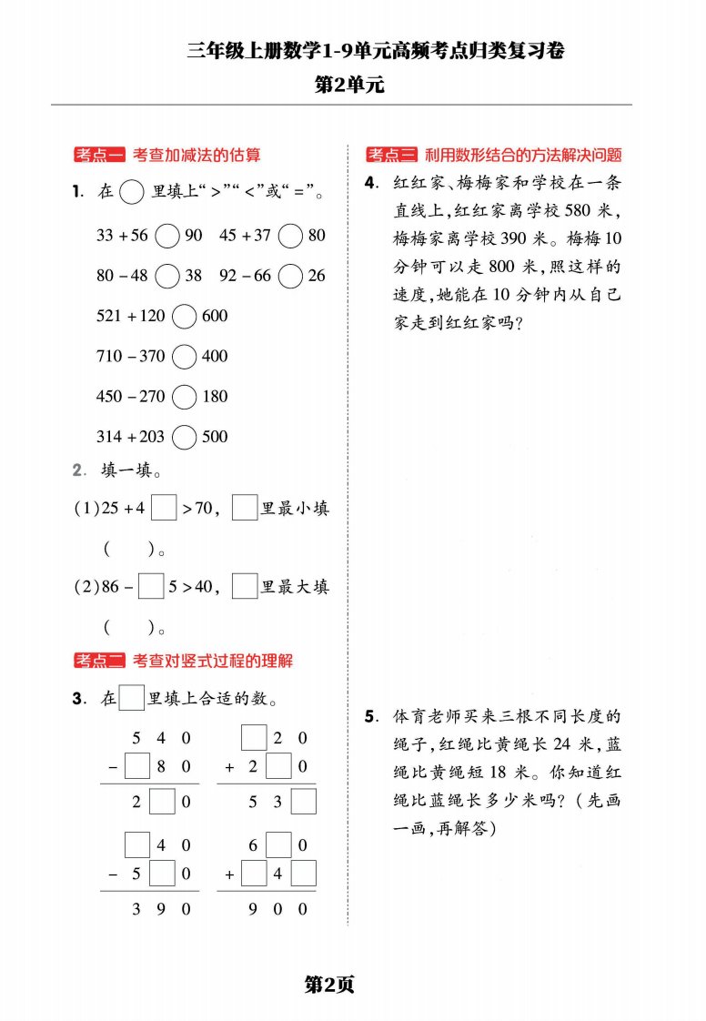三年级上册数学1-9单元高频考点归类复习卷,考前压轴满分必备!_共31页