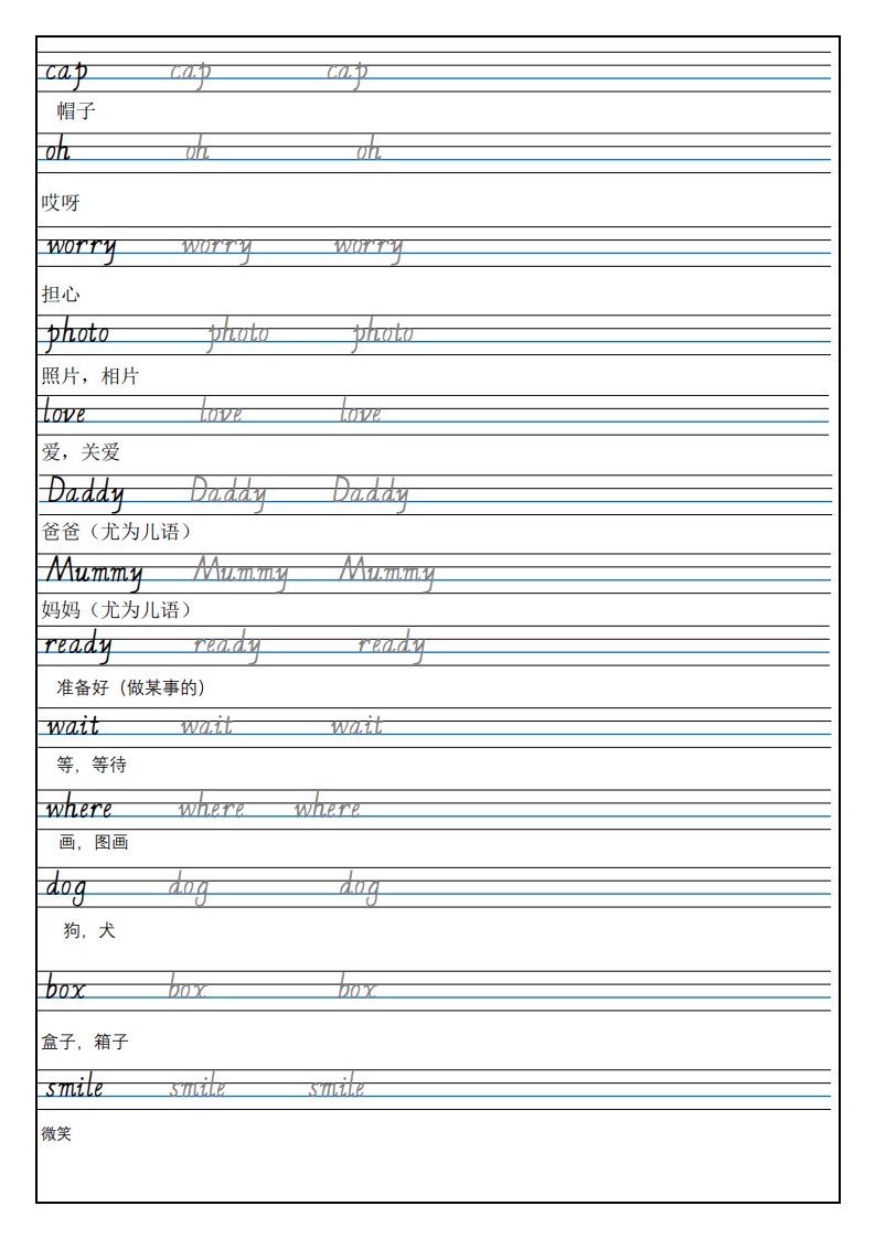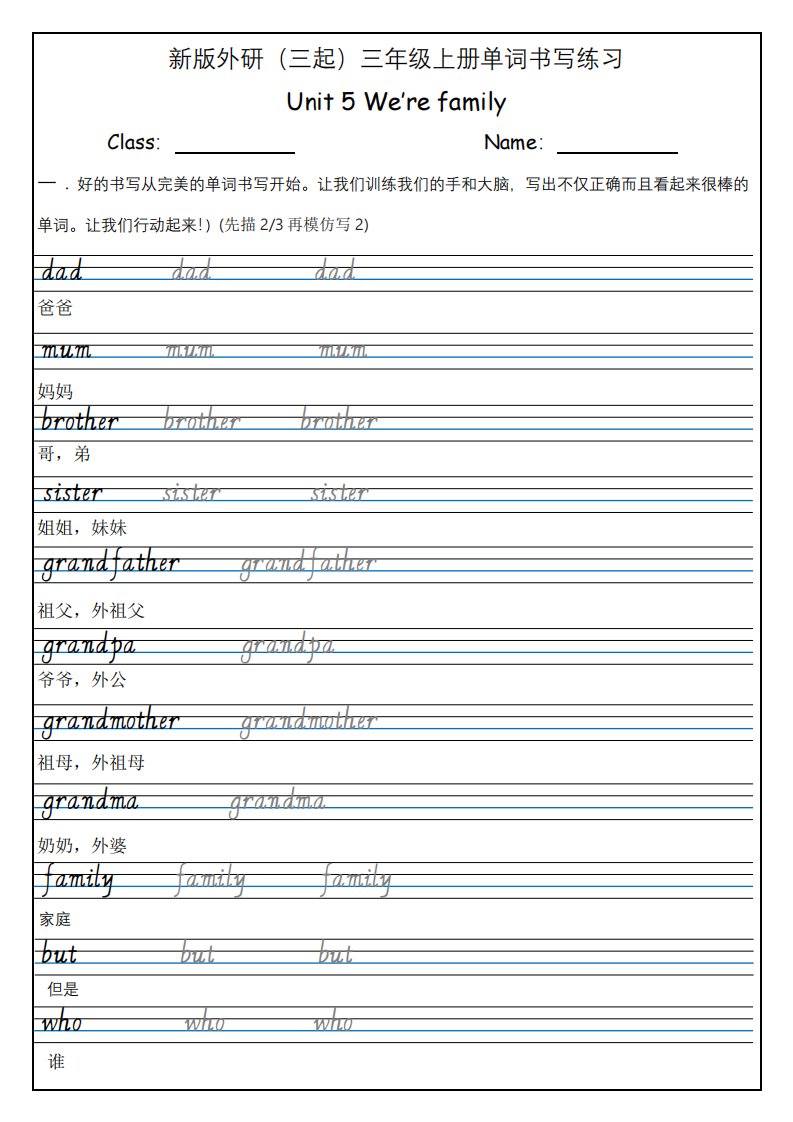 三上英语-(外研三起)Unit5Wearefamily单词书写练习_共2页