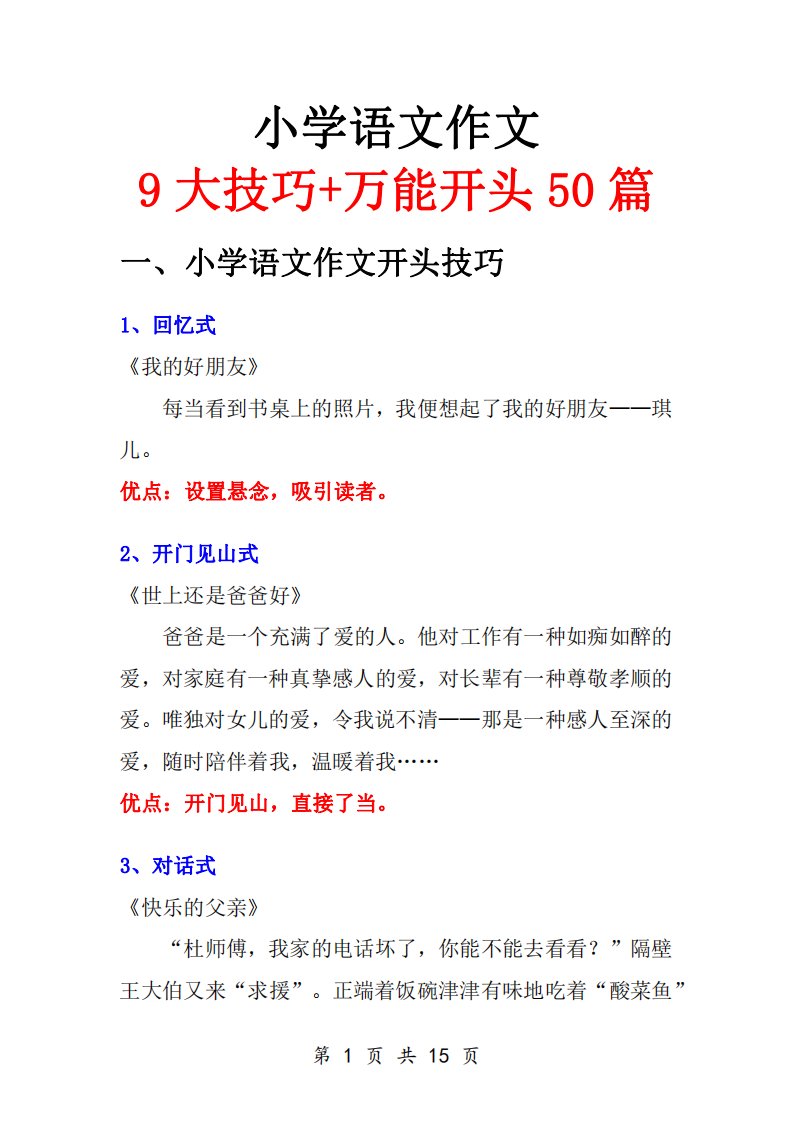 当前位置: 首页小学资源小升初正文 小学语文万能作文开头_共15页 小升初 6 天前 0 0 10 以上为部分内容预览,如需源文档请登录您的会员账号进行下载! 声明:本站所有文章,如无特殊说明或标注,均为本站原创发布。任何个人或组织,在未征得本站同意时,禁止复制、盗用、采集、发布本站内容到任何网站、书籍等各类媒体平台。如若本站内容侵犯了原著者的合法权益,可联系我们进行处理。 尚学资源永久会员 打赏 收藏 海报 链接
