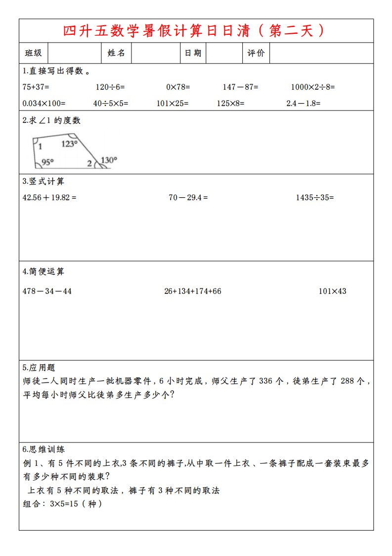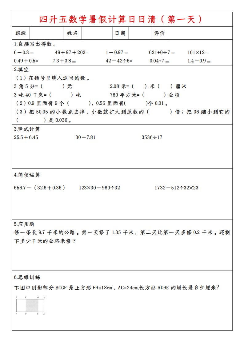 当前位置: 首页小学资源小学五年级正文 四升五数学暑假计算日日清-五上数学_共11页 小学五年级 7 天前 0 0 10 以上为部分内容预览,如需源文档请登录您的会员账号进行下载! 声明:本站所有文章,如无特殊说明或标注,均为本站原创发布。任何个人或组织,在未征得本站同意时,禁止复制、盗用、采集、发布本站内容到任何网站、书籍等各类媒体平台。如若本站内容侵犯了原著者的合法权益,可联系我们进行处理。 尚学资源永久会员 打赏 收藏 海报 链接