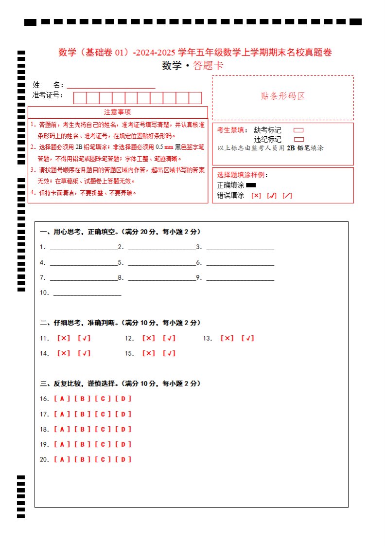 当前位置: 首页小学资源小学五年级正文 【北师大版】2024-2025学年五上数学期末考试名校真题卷答题卡_共4页 小学五年级 7 天前 0 0 5 以上为部分内容预览,如需源文档请登录您的会员账号进行下载! 声明:本站所有文章,如无特殊说明或标注,均为本站原创发布。任何个人或组织,在未征得本站同意时,禁止复制、盗用、采集、发布本站内容到任何网站、书籍等各类媒体平台。如若本站内容侵犯了原著者的合法权益,可联系我们进行处理。 尚学资源永久会员 打赏 收藏 海报 链接
