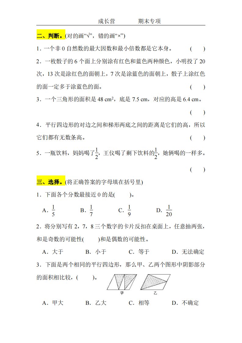 当前位置: 首页小学资源小学五年级正文 五上北师版数学【期末专项卷(空白)】_共25页 小学五年级 7 天前 0 0 15 以上为部分内容预览,如需源文档请登录您的会员账号进行下载! 声明:本站所有文章,如无特殊说明或标注,均为本站原创发布。任何个人或组织,在未征得本站同意时,禁止复制、盗用、采集、发布本站内容到任何网站、书籍等各类媒体平台。如若本站内容侵犯了原著者的合法权益,可联系我们进行处理。 尚学资源永久会员 打赏 收藏 海报 链接