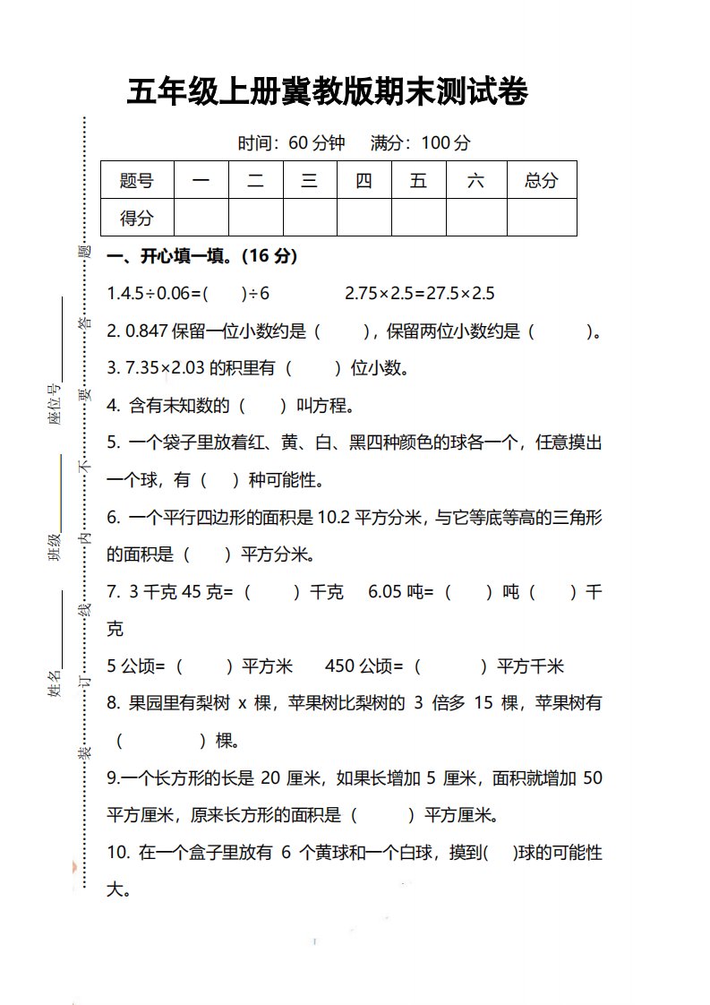 当前位置: 首页小学资源小学五年级正文 五上冀教版数学【期末试卷(1)】_共7页 小学五年级 7 天前 0 0 5 以上为部分内容预览,如需源文档请登录您的会员账号进行下载! 声明:本站所有文章,如无特殊说明或标注,均为本站原创发布。任何个人或组织,在未征得本站同意时,禁止复制、盗用、采集、发布本站内容到任何网站、书籍等各类媒体平台。如若本站内容侵犯了原著者的合法权益,可联系我们进行处理。 尚学资源永久会员 打赏 收藏 海报 链接