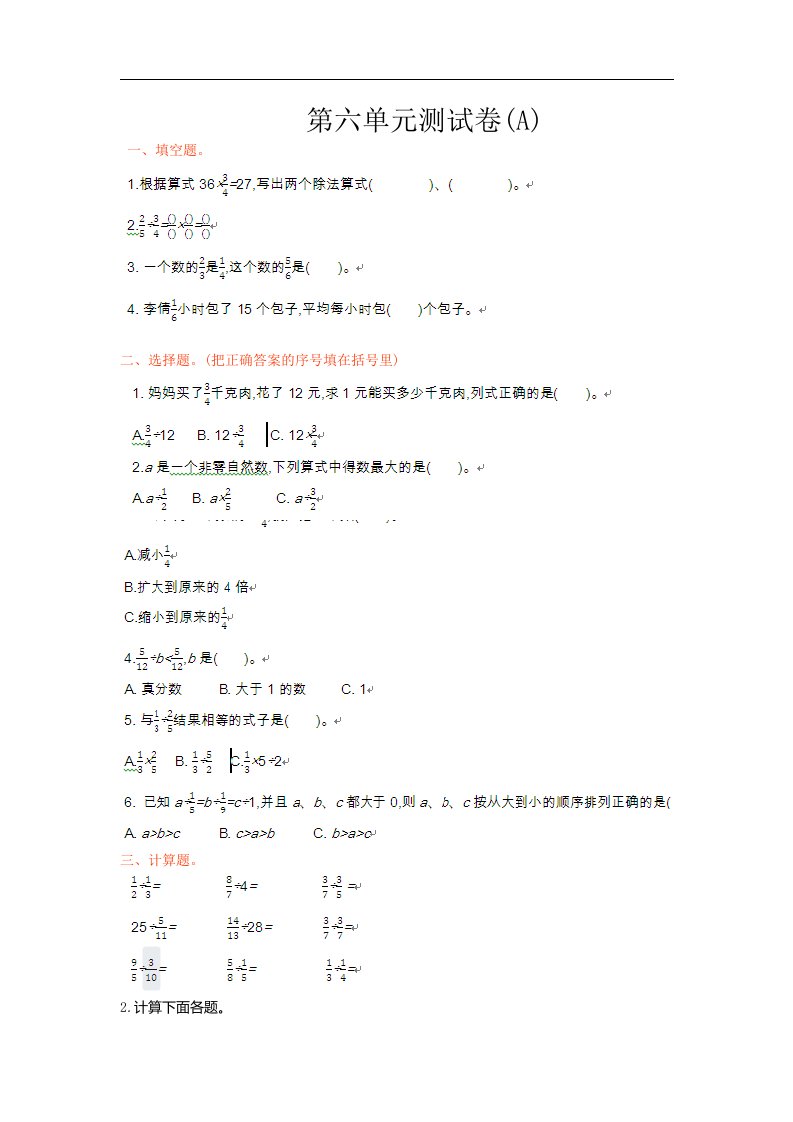五上54制青岛版数学第六单元测试卷.1_共4页