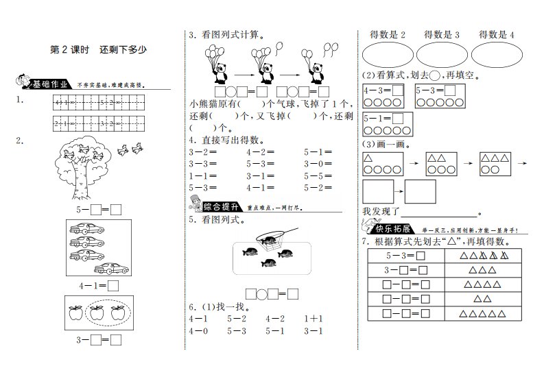 一年级数学上册3.2还剩下多少·(北师大版)_共2页