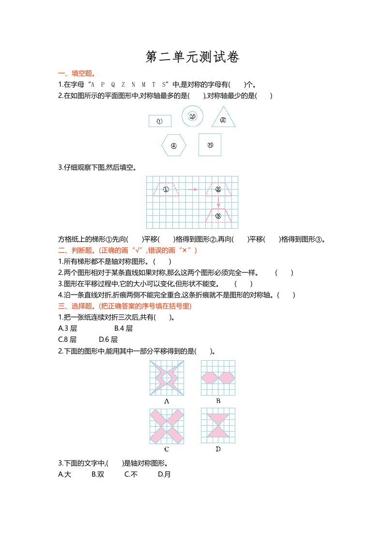 五年级数学上册第二单元测试卷(北师大版)_共4页