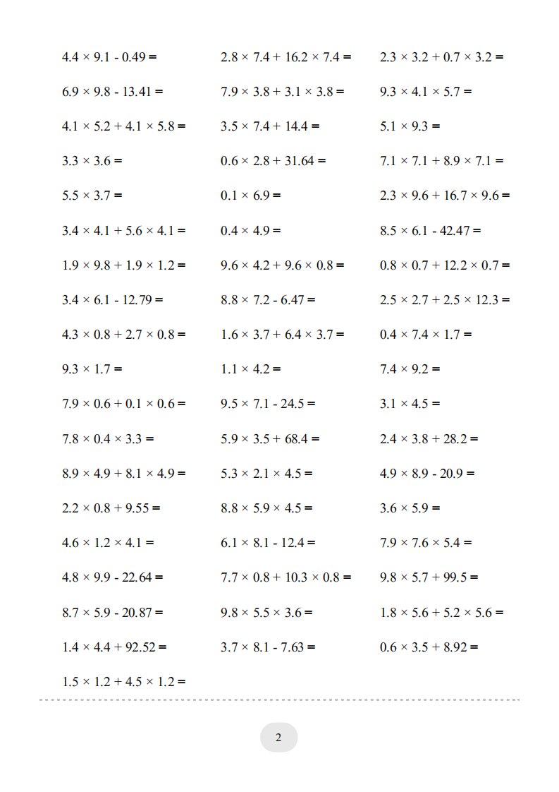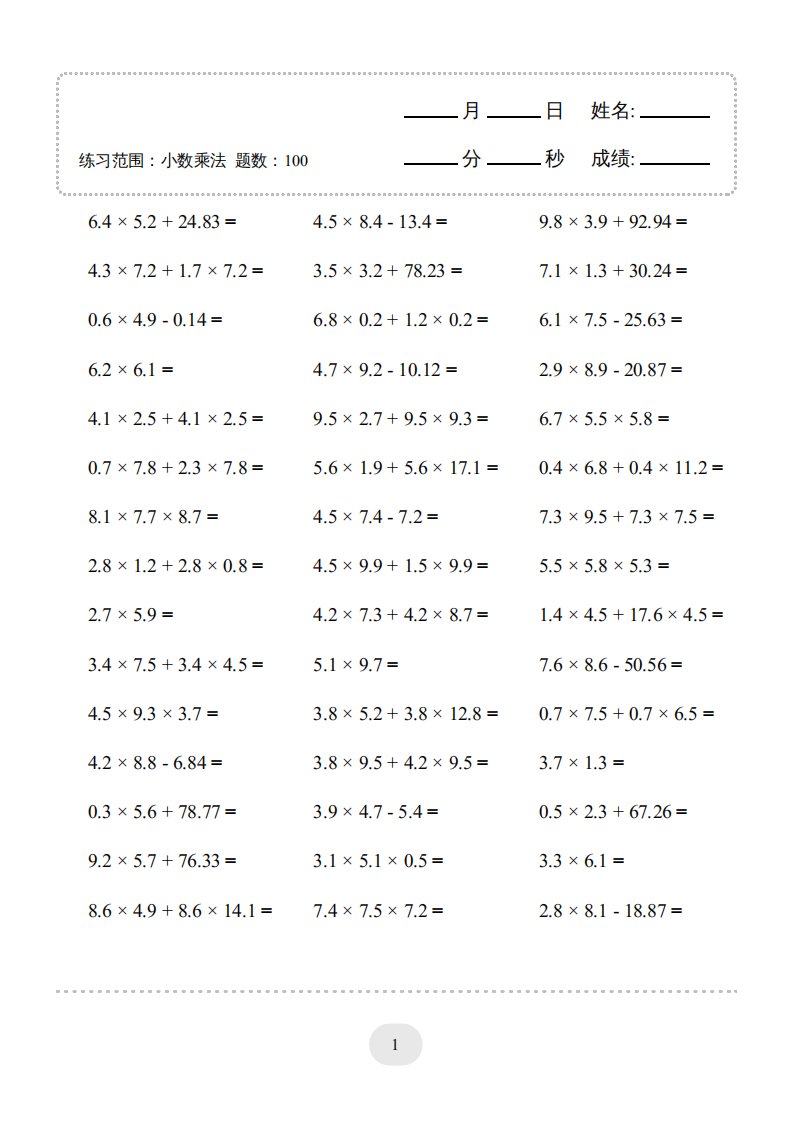 五年级数学上册▲口算题(小数乘法)连打版(人教版)_共62页