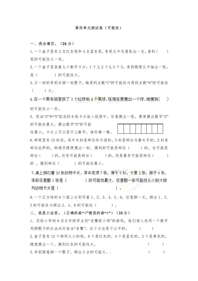 当前位置: 首页小学资源小学五年级正文 五年级数学上册第4单元测试卷2(人教版)_共6页 小学五年级 6 天前 0 0 5 以上为部分内容预览,如需源文档请登录您的会员账号进行下载! 声明:本站所有文章,如无特殊说明或标注,均为本站原创发布。任何个人或组织,在未征得本站同意时,禁止复制、盗用、采集、发布本站内容到任何网站、书籍等各类媒体平台。如若本站内容侵犯了原著者的合法权益,可联系我们进行处理。 尚学资源永久会员 打赏 收藏 海报 链接