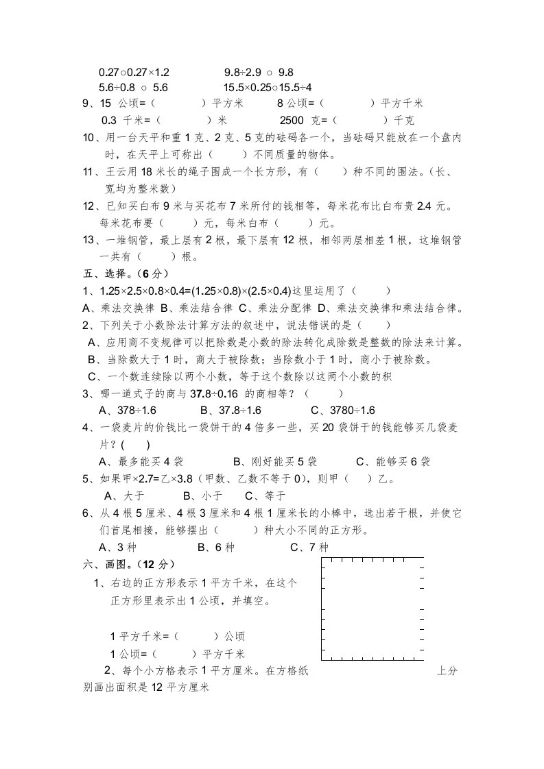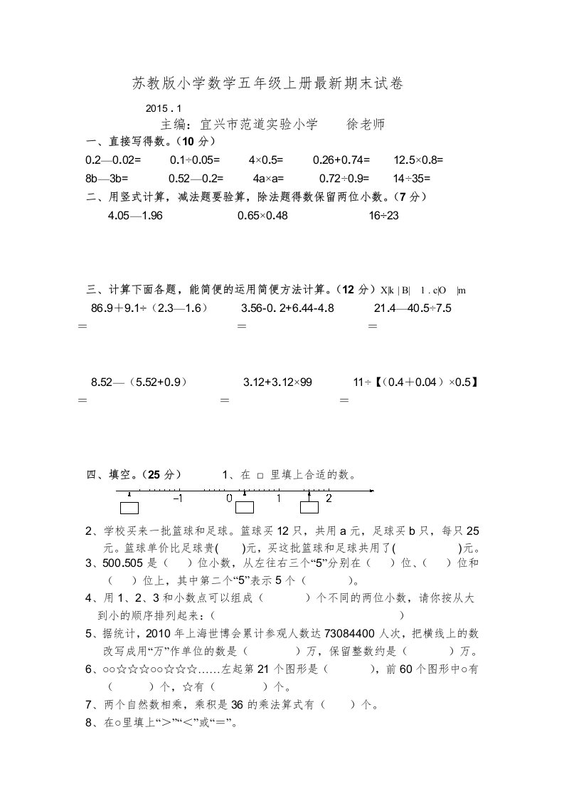 五年级数学上册苏教版最新期末自测评试卷(苏教版)_共11页