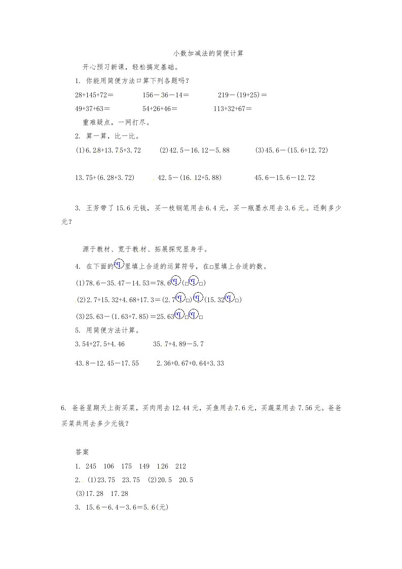 当前位置: 首页小学资源小学五年级正文 五年级数学上册练习题4小数加减法的简便计算苏教版(苏教版)_共2页 小学五年级 6 天前 0 0 5 以上为部分内容预览,如需源文档请登录您的会员账号进行下载! 声明:本站所有文章,如无特殊说明或标注,均为本站原创发布。任何个人或组织,在未征得本站同意时,禁止复制、盗用、采集、发布本站内容到任何网站、书籍等各类媒体平台。如若本站内容侵犯了原著者的合法权益,可联系我们进行处理。 尚学资源永久会员 打赏 收藏 海报 链接
