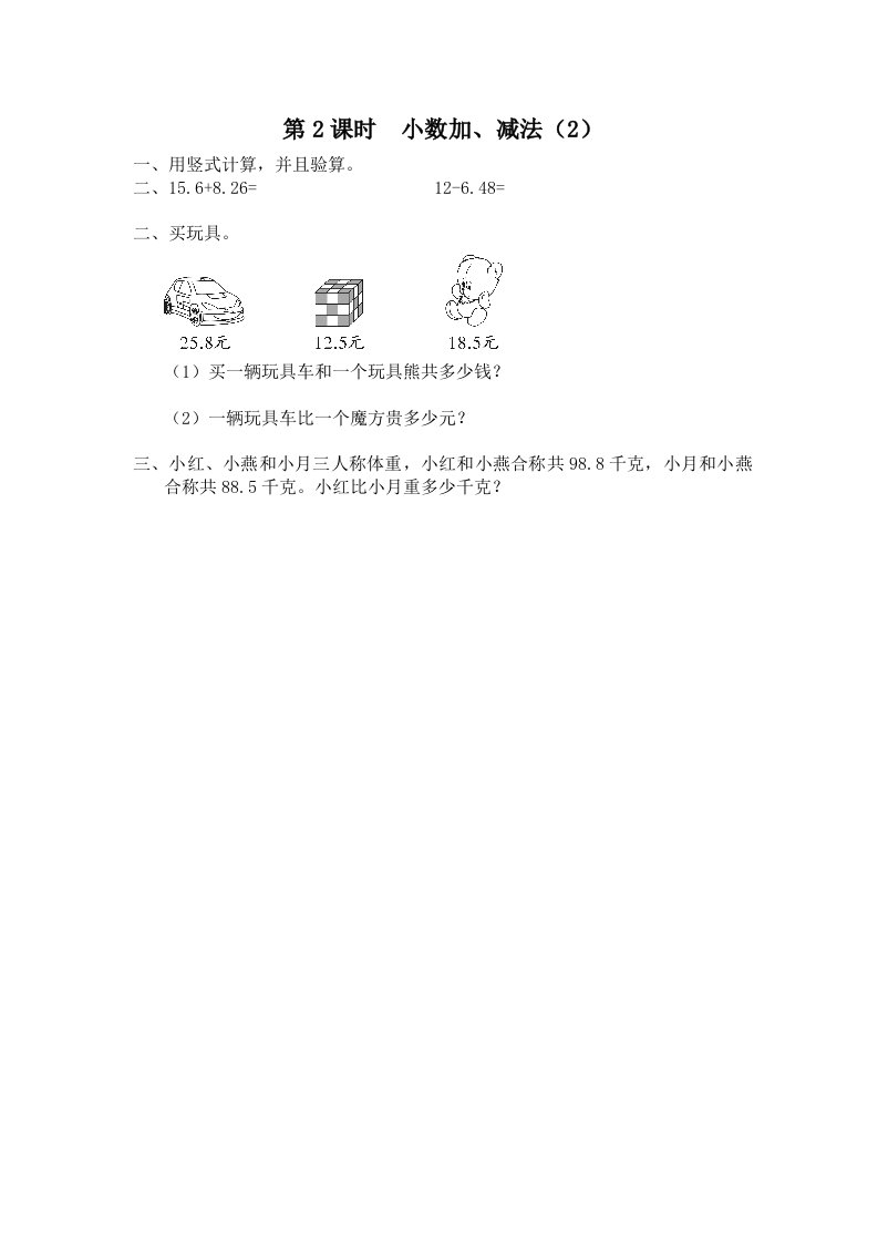 五年级数学上册第2课时小数加、减法(2)(苏教版)_共2页