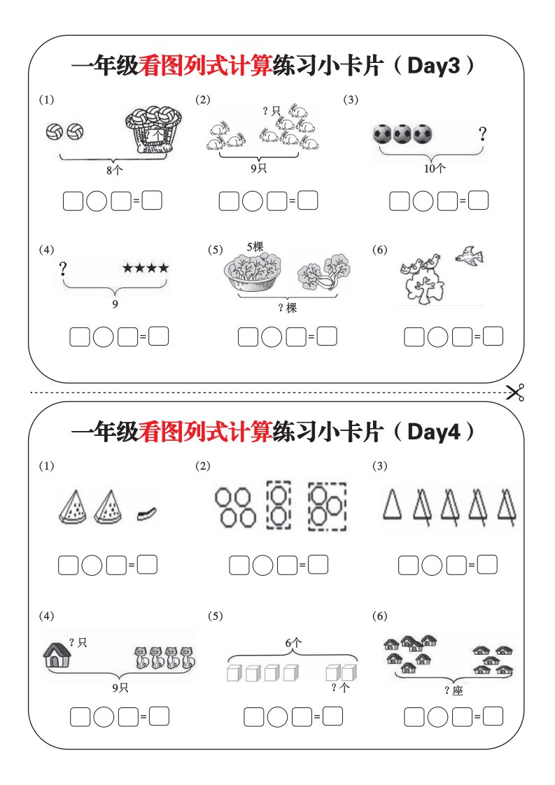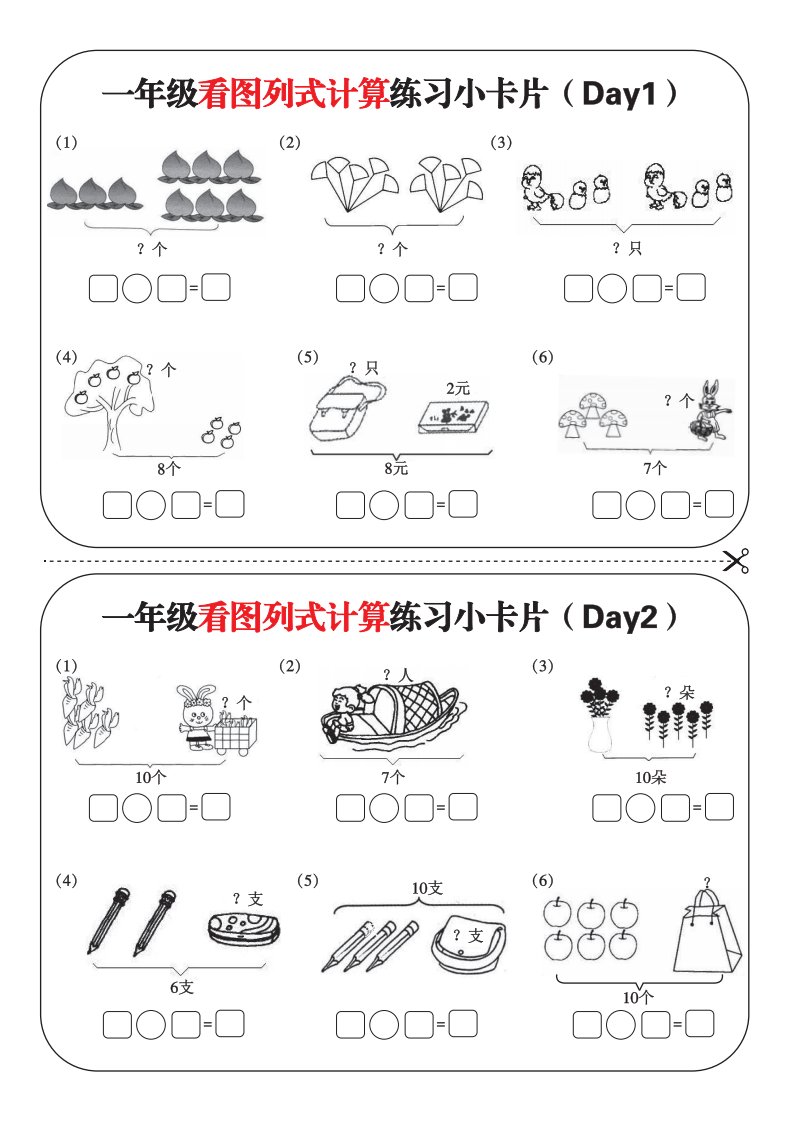 一上数学-看图列式每日练习小卡片_共6页