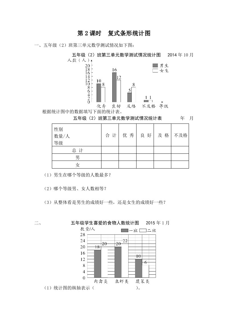 五年级数学上册第2课时复式条形统计图(苏教版)_共3页