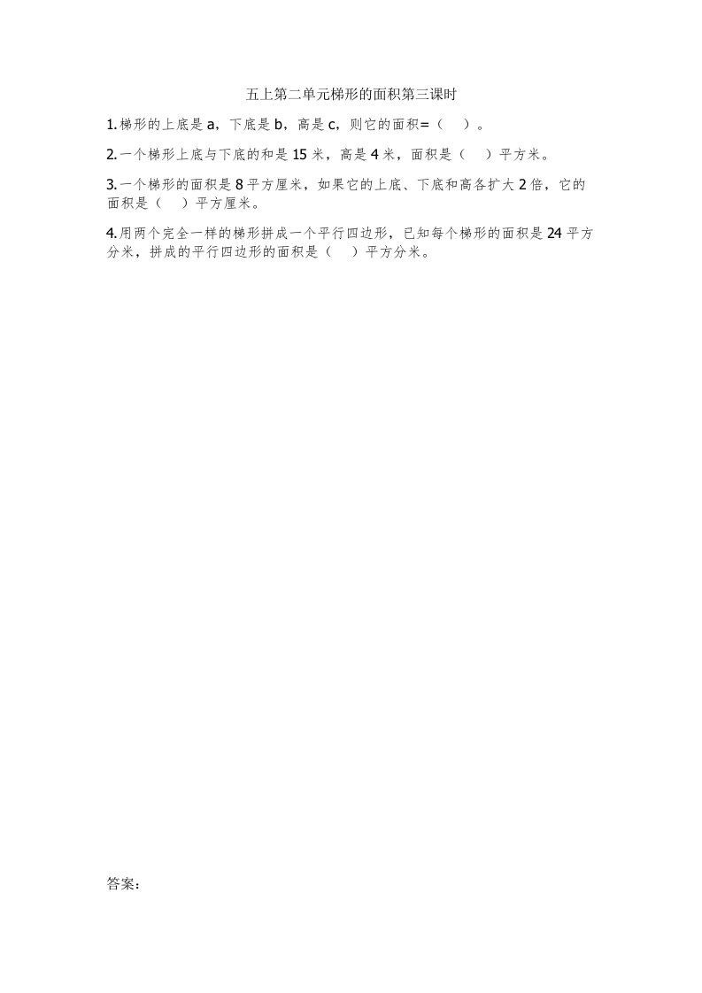 当前位置: 首页小学资源小学五年级正文 五年级数学上册2.3梯形的面积(苏教版)_共2页 小学五年级 6 天前 0 0 5 以上为部分内容预览,如需源文档请登录您的会员账号进行下载! 声明:本站所有文章,如无特殊说明或标注,均为本站原创发布。任何个人或组织,在未征得本站同意时,禁止复制、盗用、采集、发布本站内容到任何网站、书籍等各类媒体平台。如若本站内容侵犯了原著者的合法权益,可联系我们进行处理。 尚学资源永久会员 打赏 收藏 海报 链接