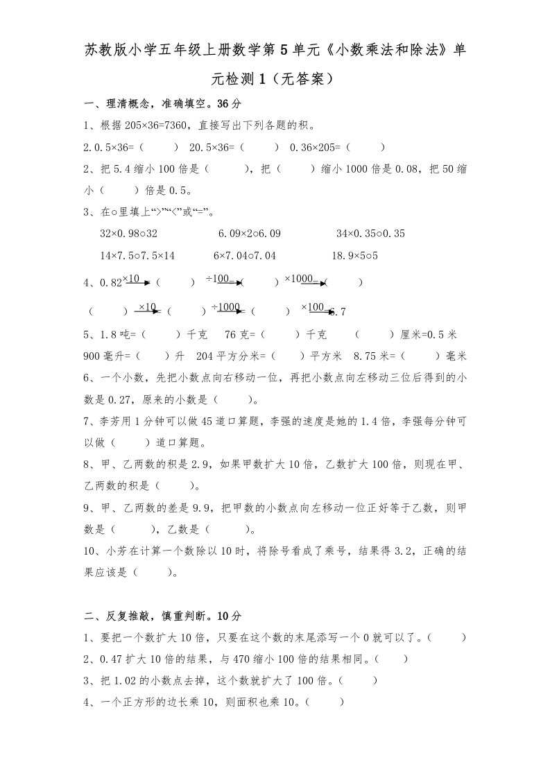 当前位置: 首页小学资源小学五年级正文 五年级数学上册第5单元《小数乘法和除法》单元检测1(无答案)(苏教版)_共4页 小学五年级 7 天前 0 0 5 以上为部分内容预览,如需源文档请登录您的会员账号进行下载! 声明:本站所有文章,如无特殊说明或标注,均为本站原创发布。任何个人或组织,在未征得本站同意时,禁止复制、盗用、采集、发布本站内容到任何网站、书籍等各类媒体平台。如若本站内容侵犯了原著者的合法权益,可联系我们进行处理。 尚学资源永久会员 打赏 收藏 海报 链接