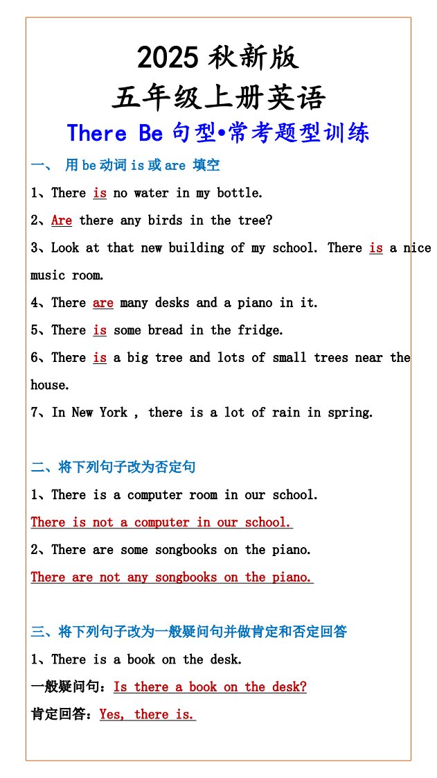 【五年级上册英语】ThereBe句型•常考题型训练_共2页