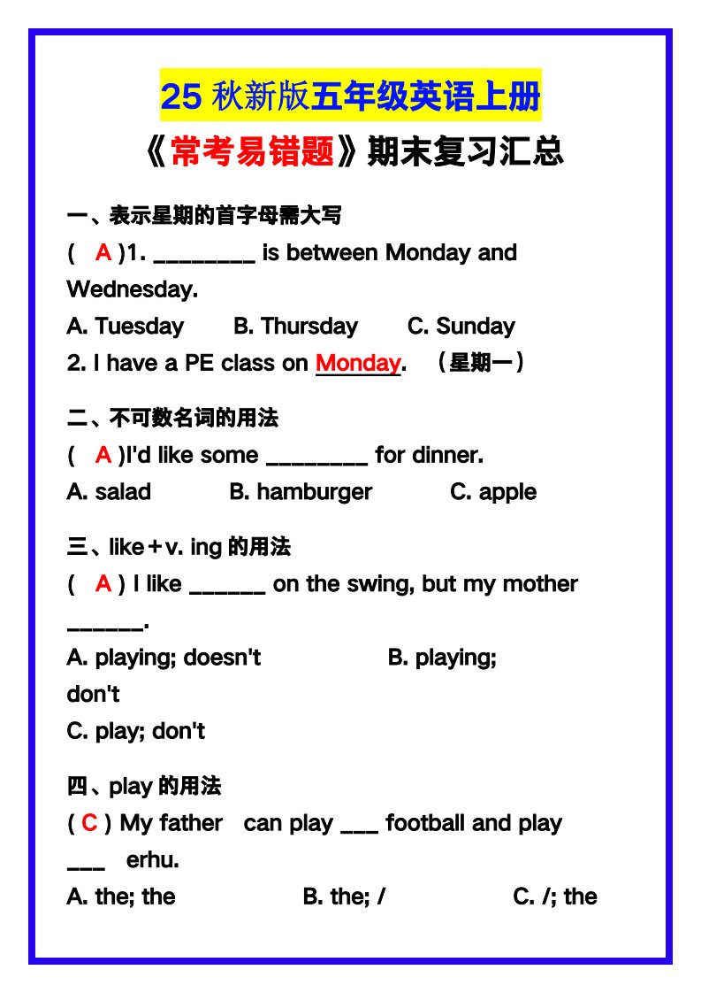 当前位置: 首页小学资源小学五年级正文 【2025秋新版】五年级英语上册《常考易错题》期末复习!_共3页 小学五年级 6 天前 0 0 5 以上为部分内容预览,如需源文档请登录您的会员账号进行下载! 声明:本站所有文章,如无特殊说明或标注,均为本站原创发布。任何个人或组织,在未征得本站同意时,禁止复制、盗用、采集、发布本站内容到任何网站、书籍等各类媒体平台。如若本站内容侵犯了原著者的合法权益,可联系我们进行处理。 尚学资源永久会员 打赏 收藏 海报 链接
