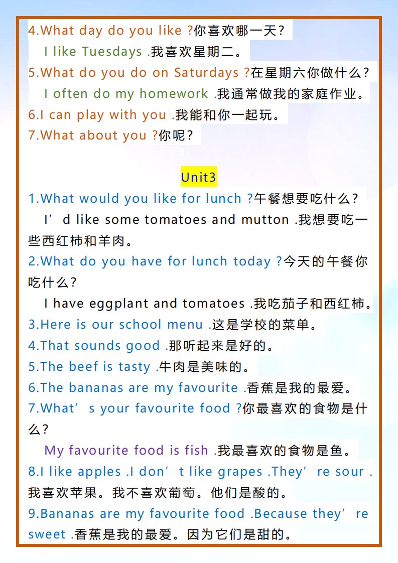 当前位置: 首页小学资源小学五年级正文 【2025秋新版】五年级上册英语重点句型及语法_共4页 小学五年级 6 天前 0 0 5 以上为部分内容预览,如需源文档请登录您的会员账号进行下载! 声明:本站所有文章,如无特殊说明或标注,均为本站原创发布。任何个人或组织,在未征得本站同意时,禁止复制、盗用、采集、发布本站内容到任何网站、书籍等各类媒体平台。如若本站内容侵犯了原著者的合法权益,可联系我们进行处理。 尚学资源永久会员 打赏 收藏 海报 链接