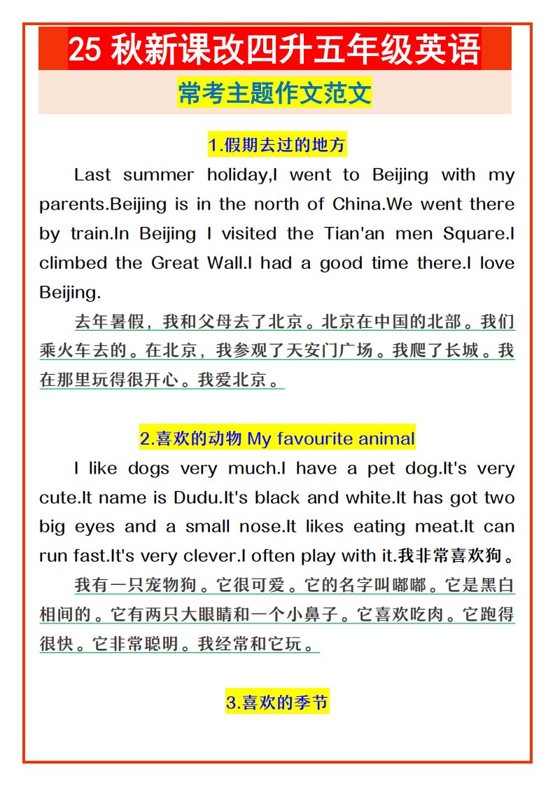 当前位置: 首页小学资源小学五年级正文 【2025秋新版】四升五年级英语常考主题作文范文-五上英语_共3页 小学五年级 6 天前 0 0 5 以上为部分内容预览,如需源文档请登录您的会员账号进行下载! 声明:本站所有文章,如无特殊说明或标注,均为本站原创发布。任何个人或组织,在未征得本站同意时,禁止复制、盗用、采集、发布本站内容到任何网站、书籍等各类媒体平台。如若本站内容侵犯了原著者的合法权益,可联系我们进行处理。 尚学资源永久会员 打赏 收藏 海报 链接