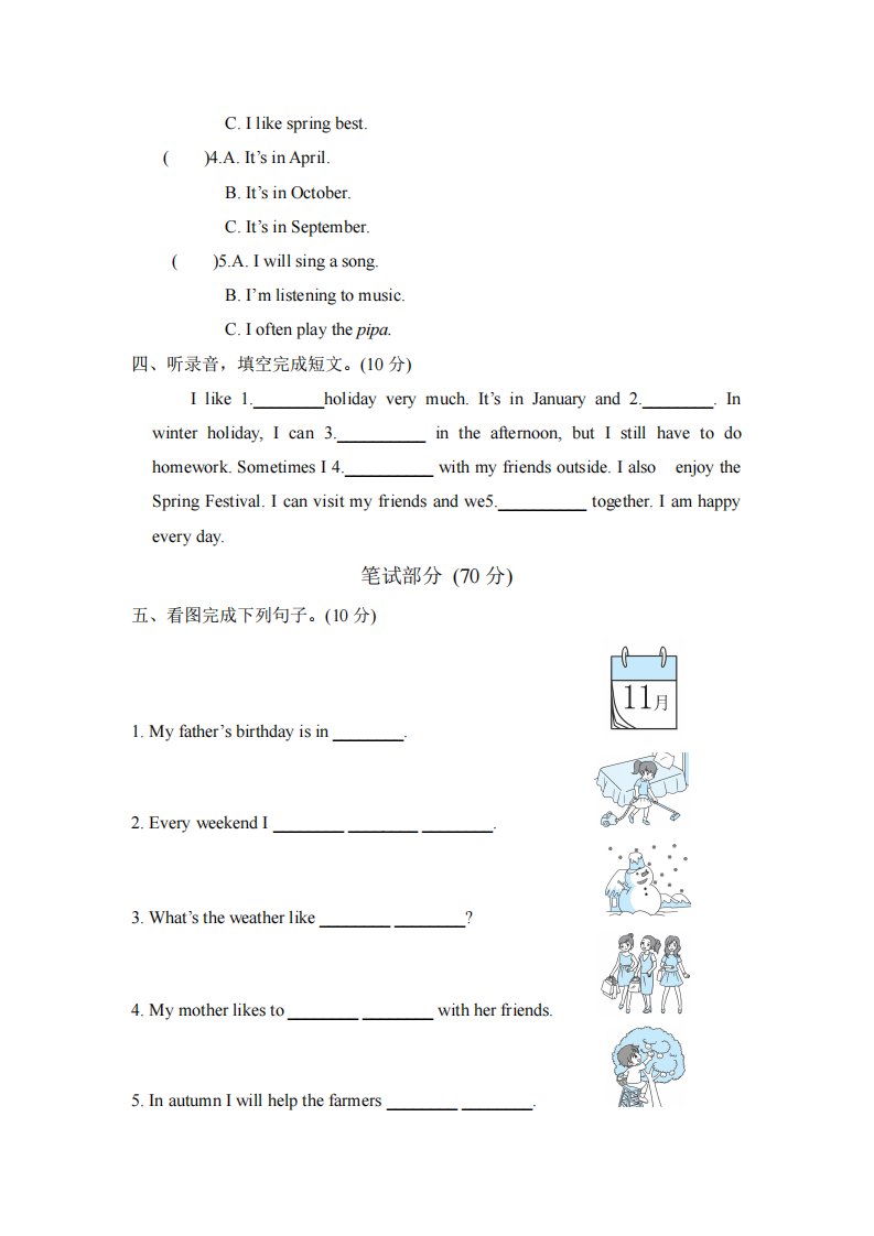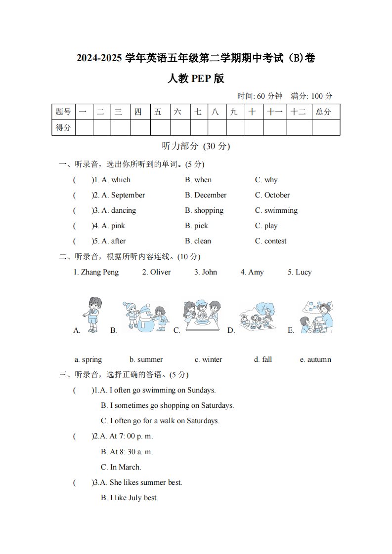 当前位置: 首页小学资源小学五年级正文 人教版2024-2025学年英语五年级第二学期期中考试(B)卷_共7页 小学五年级 6 天前 0 0 5 以上为部分内容预览,如需源文档请登录您的会员账号进行下载! 声明:本站所有文章,如无特殊说明或标注,均为本站原创发布。任何个人或组织,在未征得本站同意时,禁止复制、盗用、采集、发布本站内容到任何网站、书籍等各类媒体平台。如若本站内容侵犯了原著者的合法权益,可联系我们进行处理。 尚学资源永久会员 打赏 收藏 海报 链接