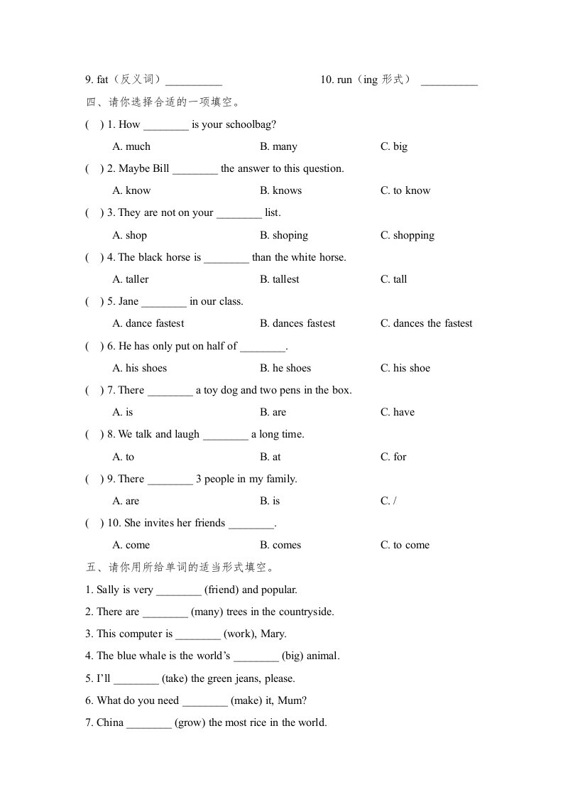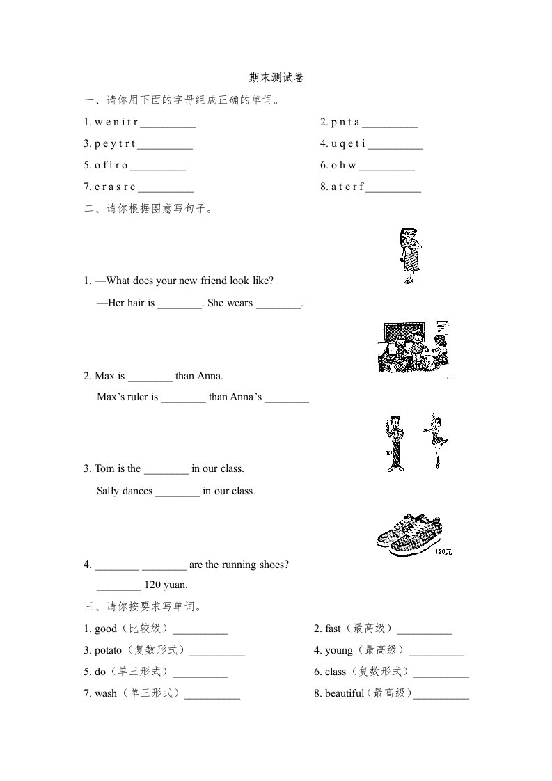 五年级英语上册期末测试卷(人教版一起点)_共5页