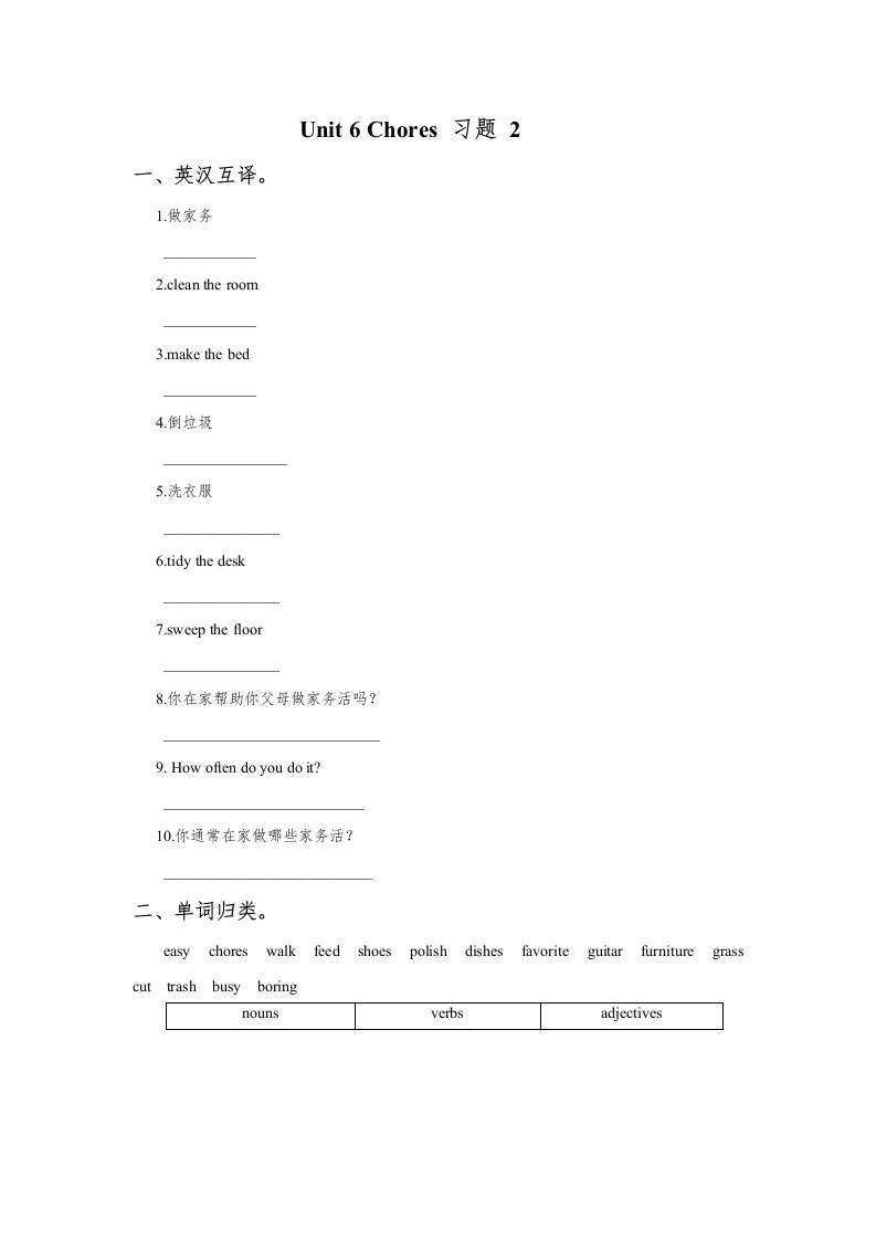 五年级英语上册Unit6Chores习题2(人教版一起点)_共2页