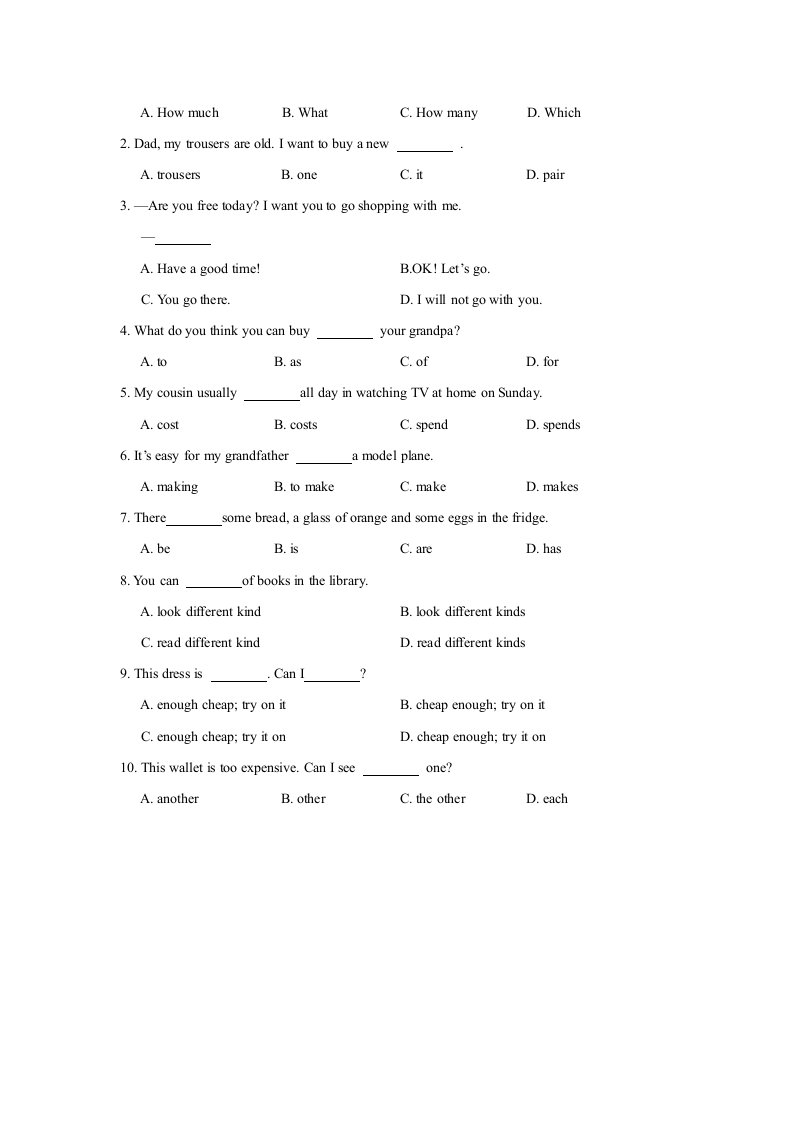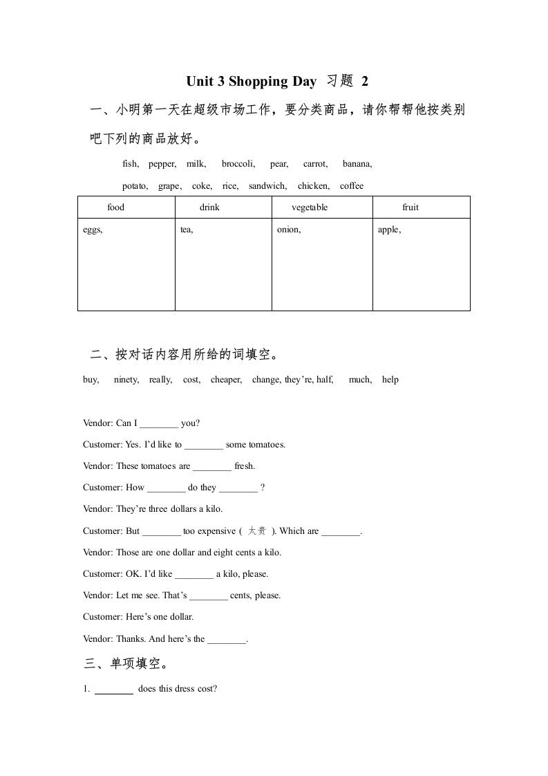 五年级英语上册Unit4ShoppingDay习题2(人教版一起点)_共2页