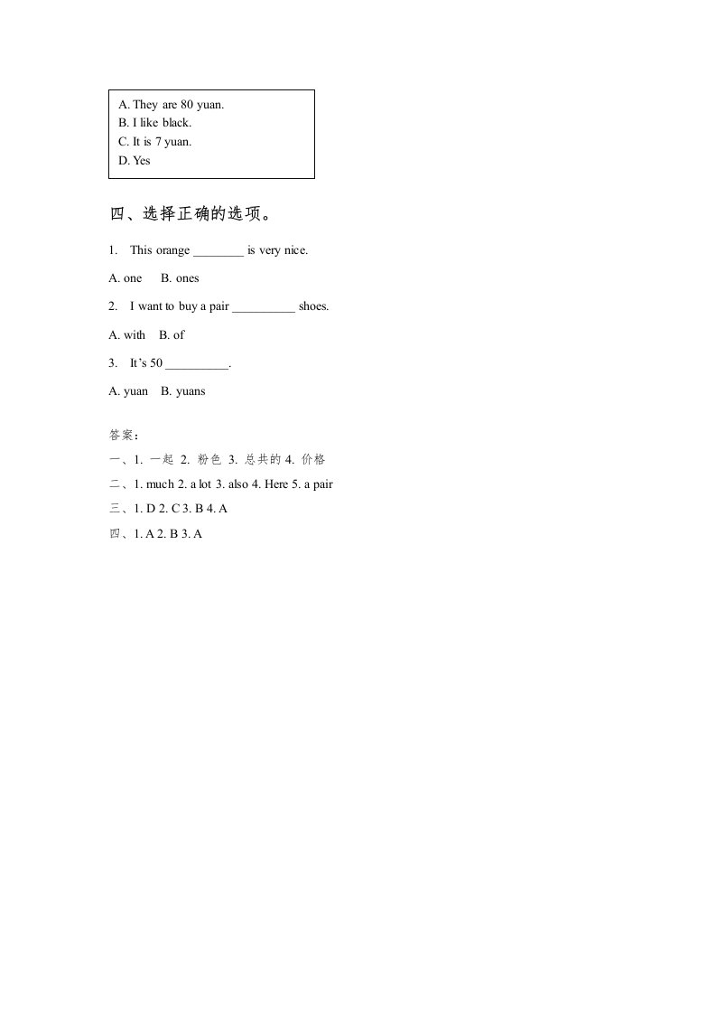 当前位置: 首页小学资源小学五年级正文 五年级英语上册Unit4ShoppingDayLesson3同步练习2(人教版一起点)_共2页 小学五年级 7 天前 0 0 5 以上为部分内容预览,如需源文档请登录您的会员账号进行下载! 声明:本站所有文章,如无特殊说明或标注,均为本站原创发布。任何个人或组织,在未征得本站同意时,禁止复制、盗用、采集、发布本站内容到任何网站、书籍等各类媒体平台。如若本站内容侵犯了原著者的合法权益,可联系我们进行处理。 尚学资源永久会员 打赏 收藏 海报 链接