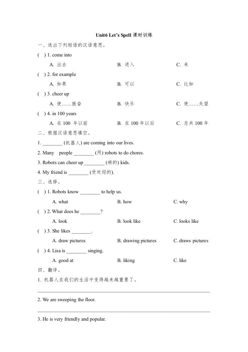 当前位置: 首页小学资源小学五年级正文 五年级英语上册Unit6_Let’s_Spell课时训练(人教版一起点)_共3页 小学五年级 7 天前 0 0 5 以上为部分内容预览,如需源文档请登录您的会员账号进行下载! 声明:本站所有文章,如无特殊说明或标注,均为本站原创发布。任何个人或组织,在未征得本站同意时,禁止复制、盗用、采集、发布本站内容到任何网站、书籍等各类媒体平台。如若本站内容侵犯了原著者的合法权益,可联系我们进行处理。 尚学资源永久会员 打赏 收藏 海报 链接