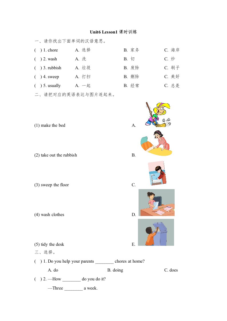 五年级英语上册Unit6_Lesson1课时训练(人教版一起点)_共3页