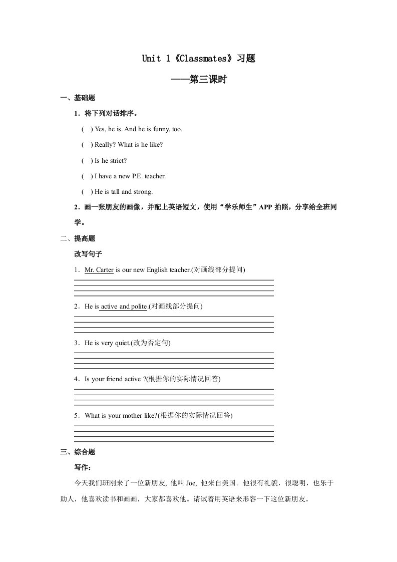 五年级英语上册Unit1习题第3课时(人教版一起点)_共3页