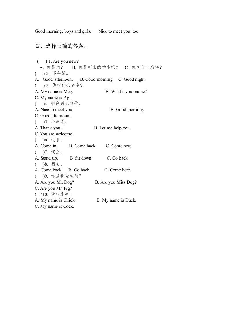 一年级英语上册期末测试卷(12)(人教一起点)_共2页