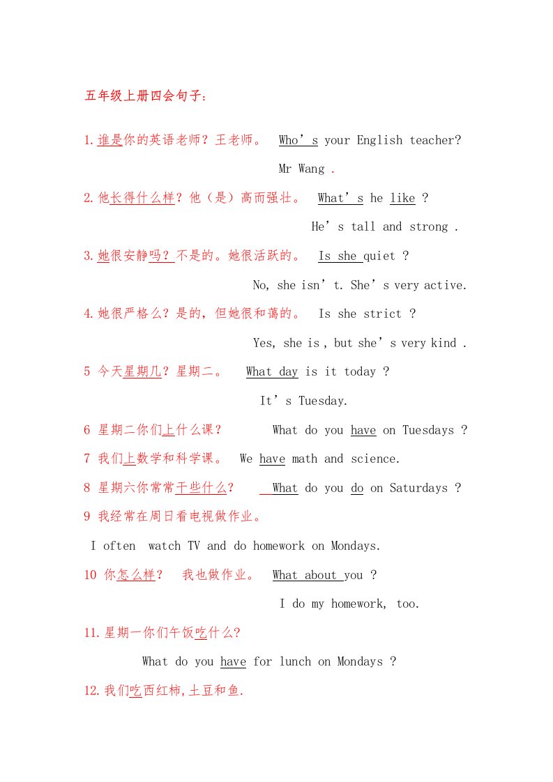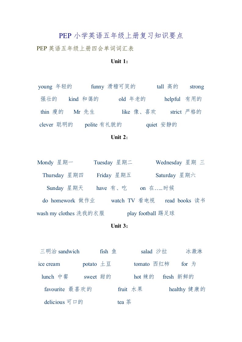 五年级英语上册复习知识要点(人教版PEP)_共3页