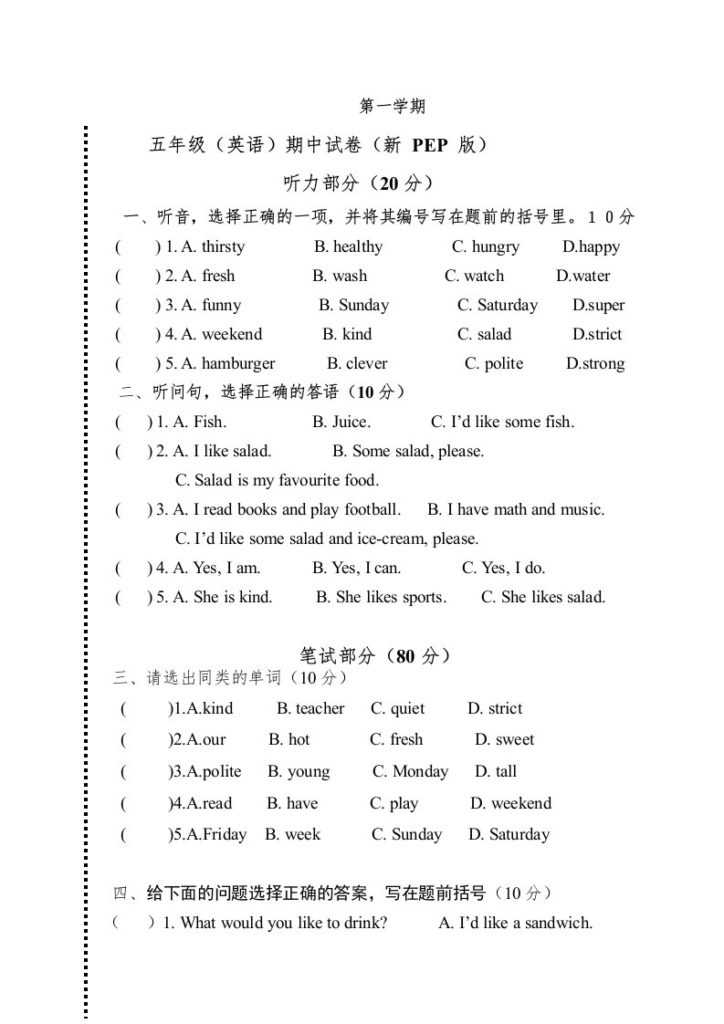 当前位置: 首页小学资源小学五年级正文 五年级英语上册期中测试卷7(人教版PEP)_共4页 小学五年级 6 天前 0 0 5 以上为部分内容预览,如需源文档请登录您的会员账号进行下载! 声明:本站所有文章,如无特殊说明或标注,均为本站原创发布。任何个人或组织,在未征得本站同意时,禁止复制、盗用、采集、发布本站内容到任何网站、书籍等各类媒体平台。如若本站内容侵犯了原著者的合法权益,可联系我们进行处理。 尚学资源永久会员 打赏 收藏 海报 链接