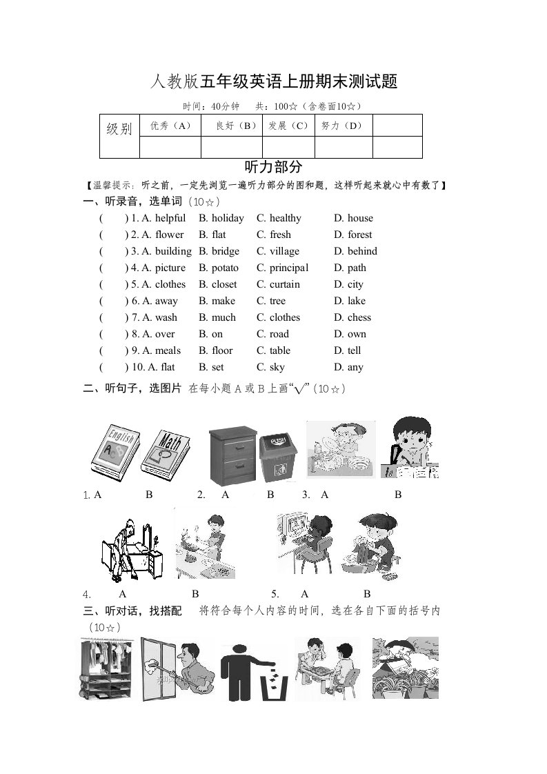 当前位置: 首页小学资源小学五年级正文 五年级英语上册期末测试卷9(人教版PEP)_共4页 小学五年级 6 天前 0 0 5 以上为部分内容预览,如需源文档请登录您的会员账号进行下载! 声明:本站所有文章,如无特殊说明或标注,均为本站原创发布。任何个人或组织,在未征得本站同意时,禁止复制、盗用、采集、发布本站内容到任何网站、书籍等各类媒体平台。如若本站内容侵犯了原著者的合法权益,可联系我们进行处理。 尚学资源永久会员 打赏 收藏 海报 链接