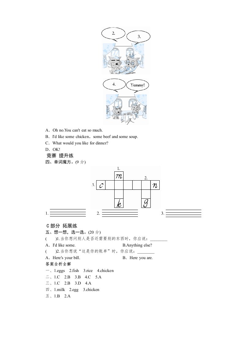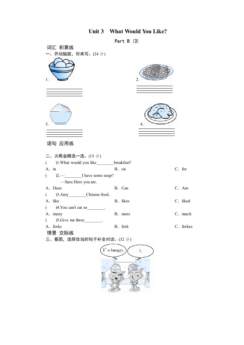 五年级英语上册Unit3WhatwouldyoulikePartB练习及答案(3)(人教版PEP)_共3页