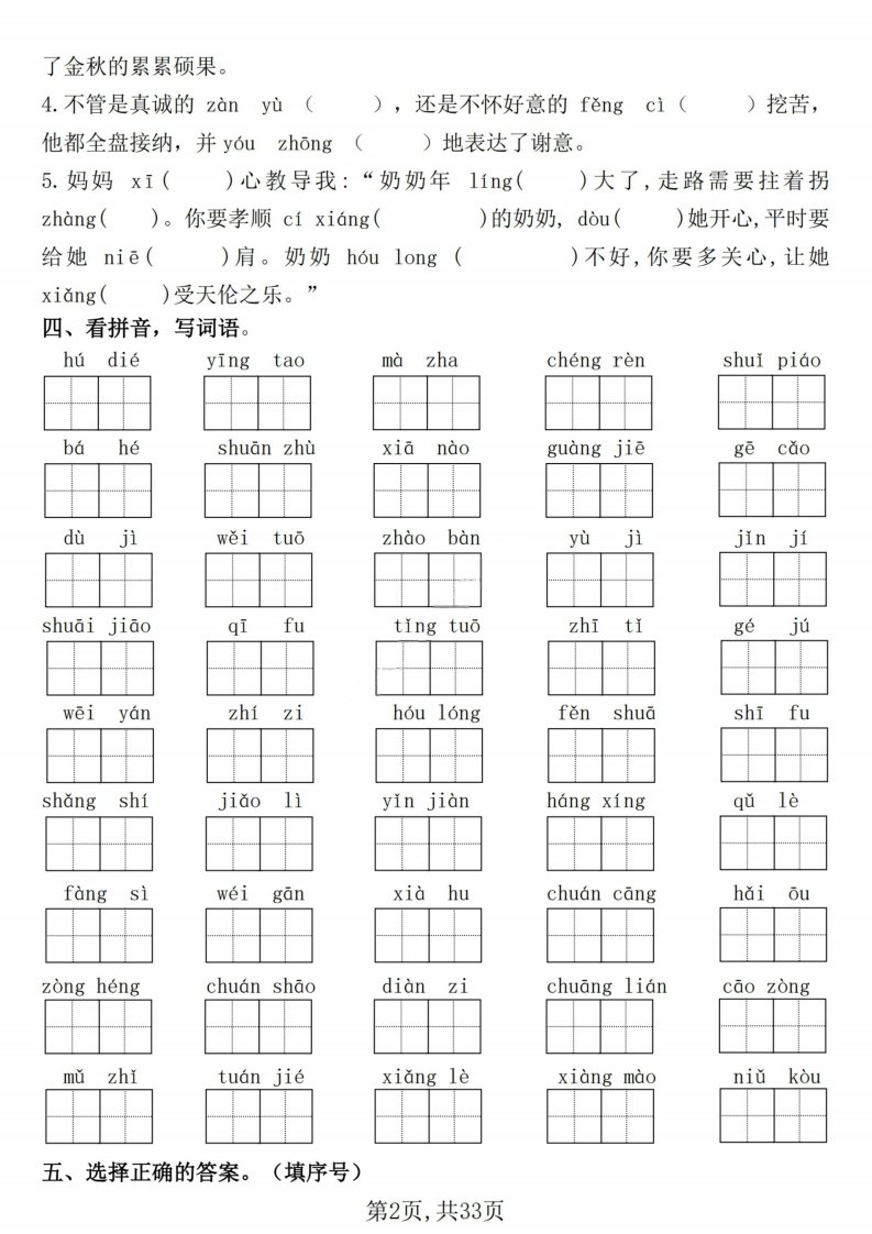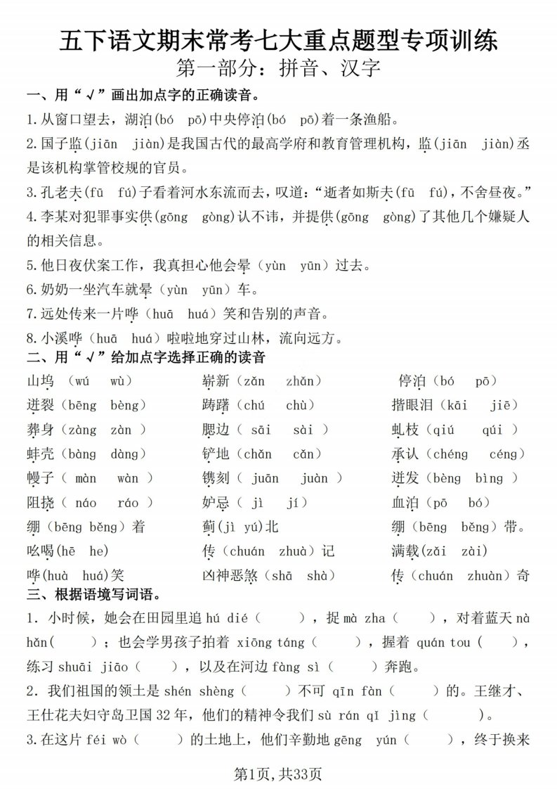 当前位置: 首页小学资源小学五年级正文 五下语文期末常考七大重点题型专项训练_共33页 小学五年级 6 天前 0 0 15 以上为部分内容预览,如需源文档请登录您的会员账号进行下载! 声明:本站所有文章,如无特殊说明或标注,均为本站原创发布。任何个人或组织,在未征得本站同意时,禁止复制、盗用、采集、发布本站内容到任何网站、书籍等各类媒体平台。如若本站内容侵犯了原著者的合法权益,可联系我们进行处理。 尚学资源永久会员 打赏 收藏 海报 链接