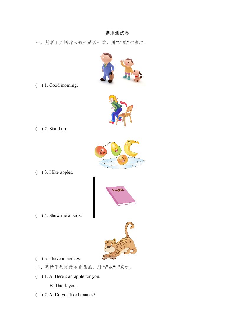 一年级英语上册期末测试卷(1)(人教一起点)_共3页